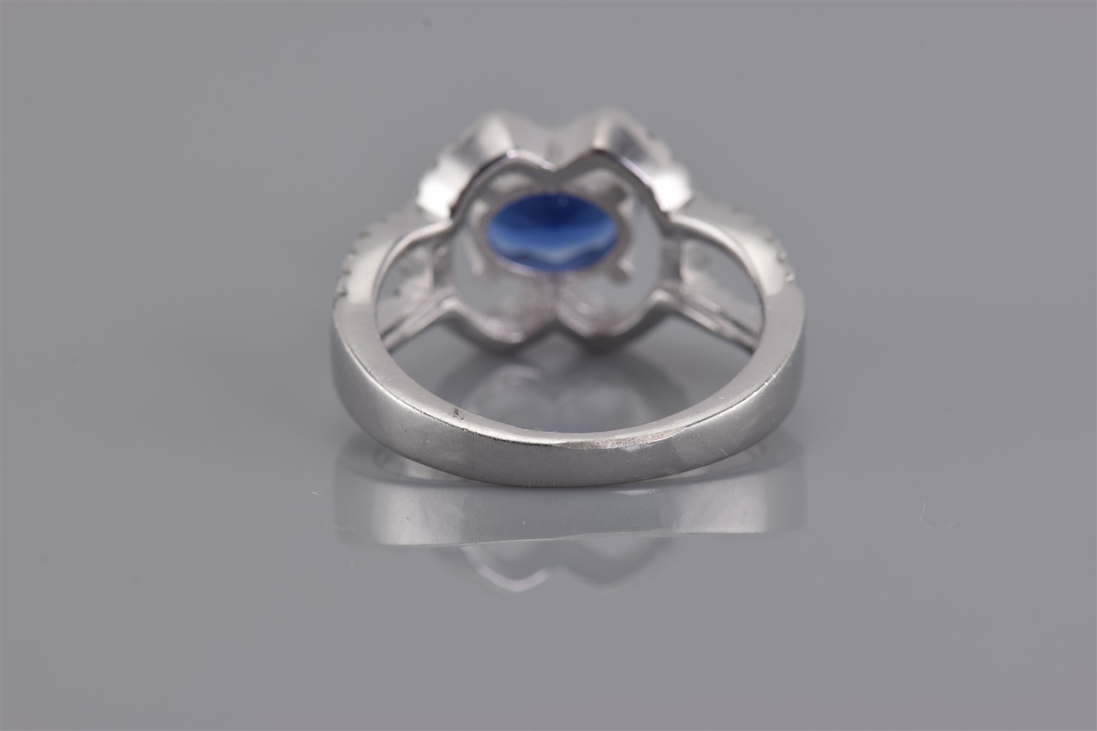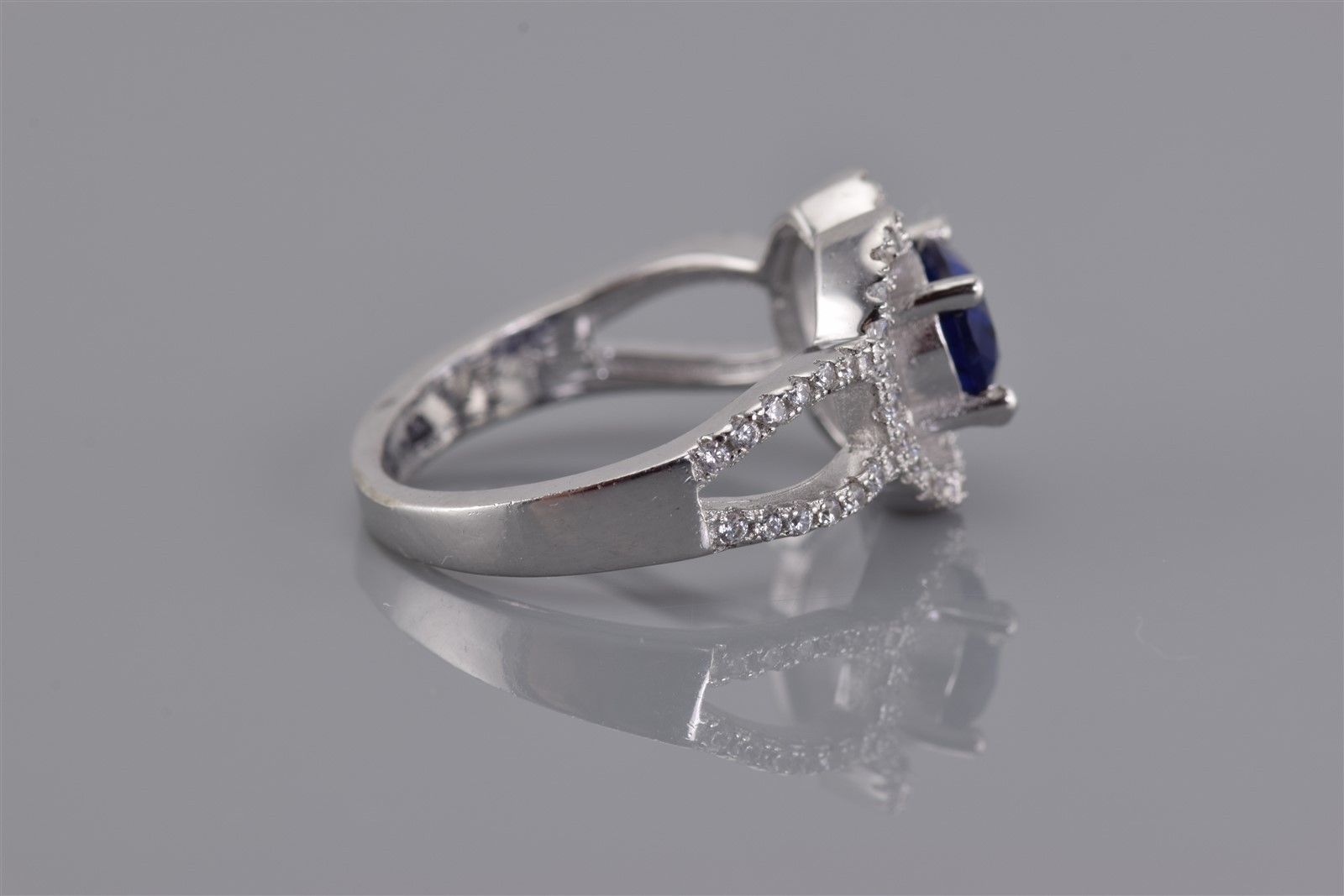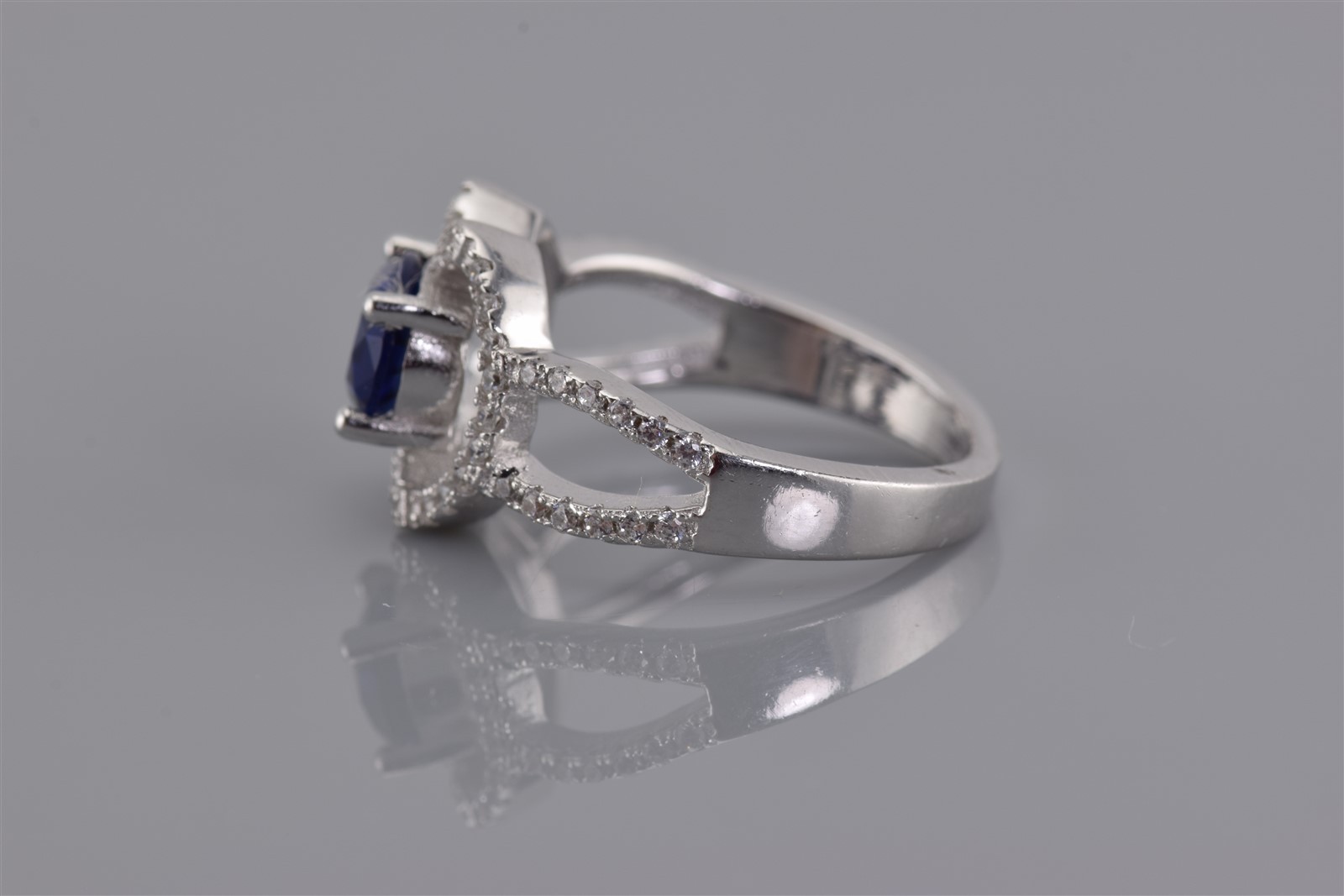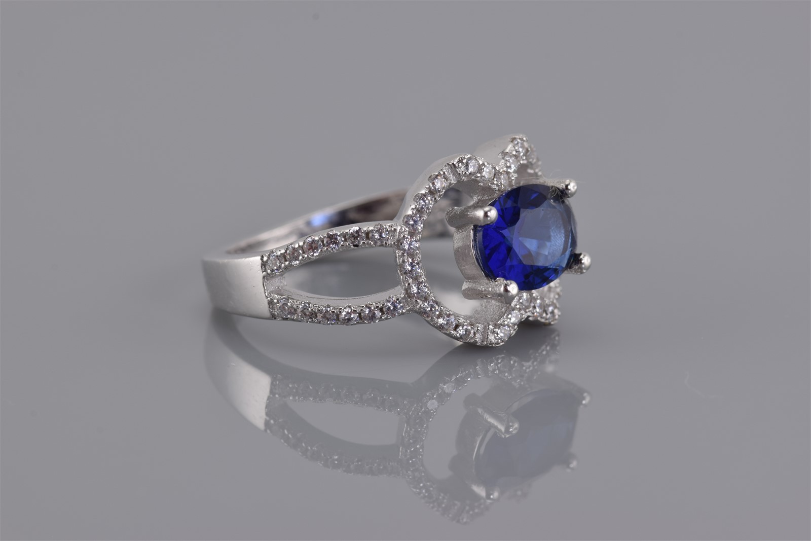 как выглядит Sterling Silver Oval Blue Cubic Zirconia Accented Looped Band Ring 925 Sz: 6 фото