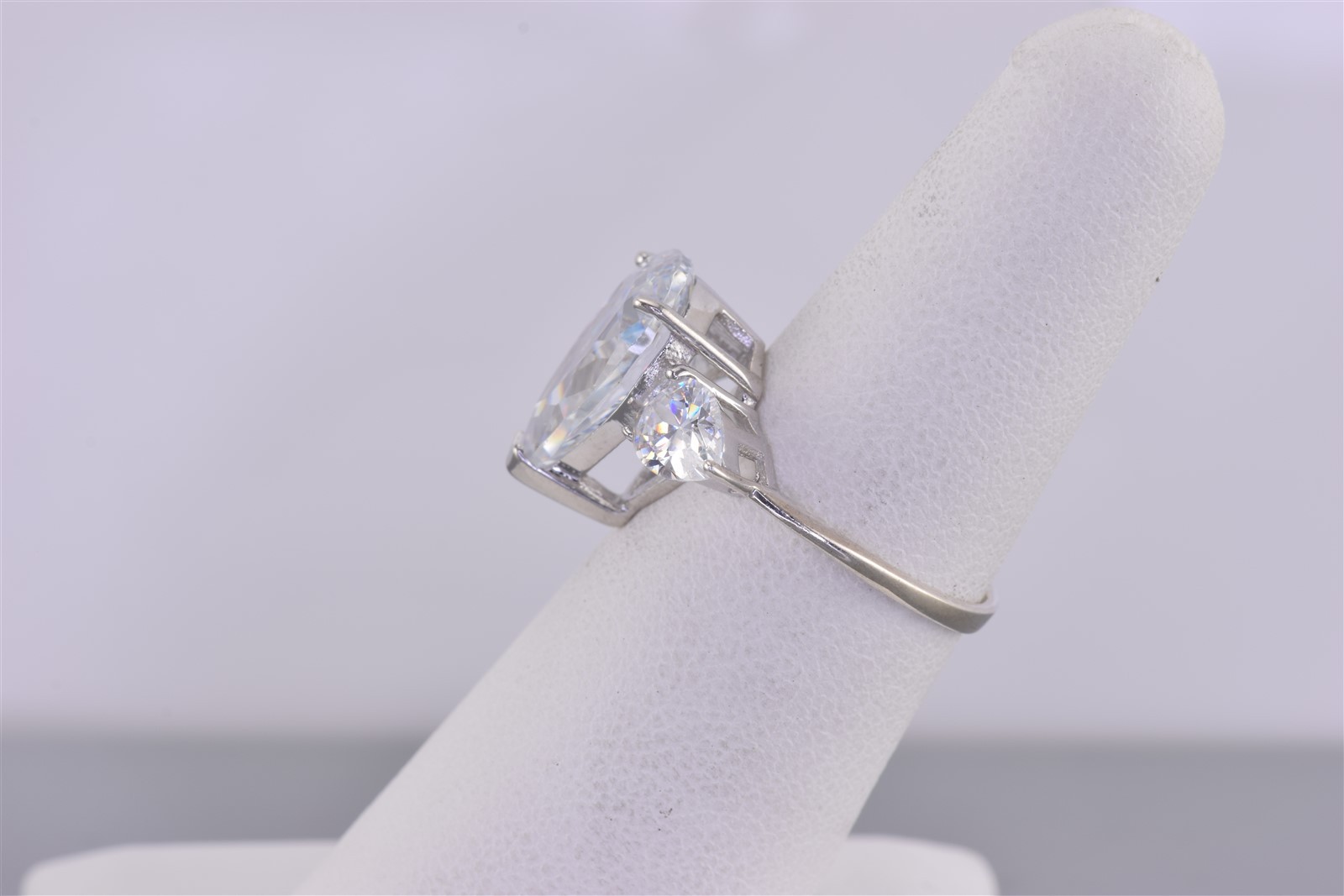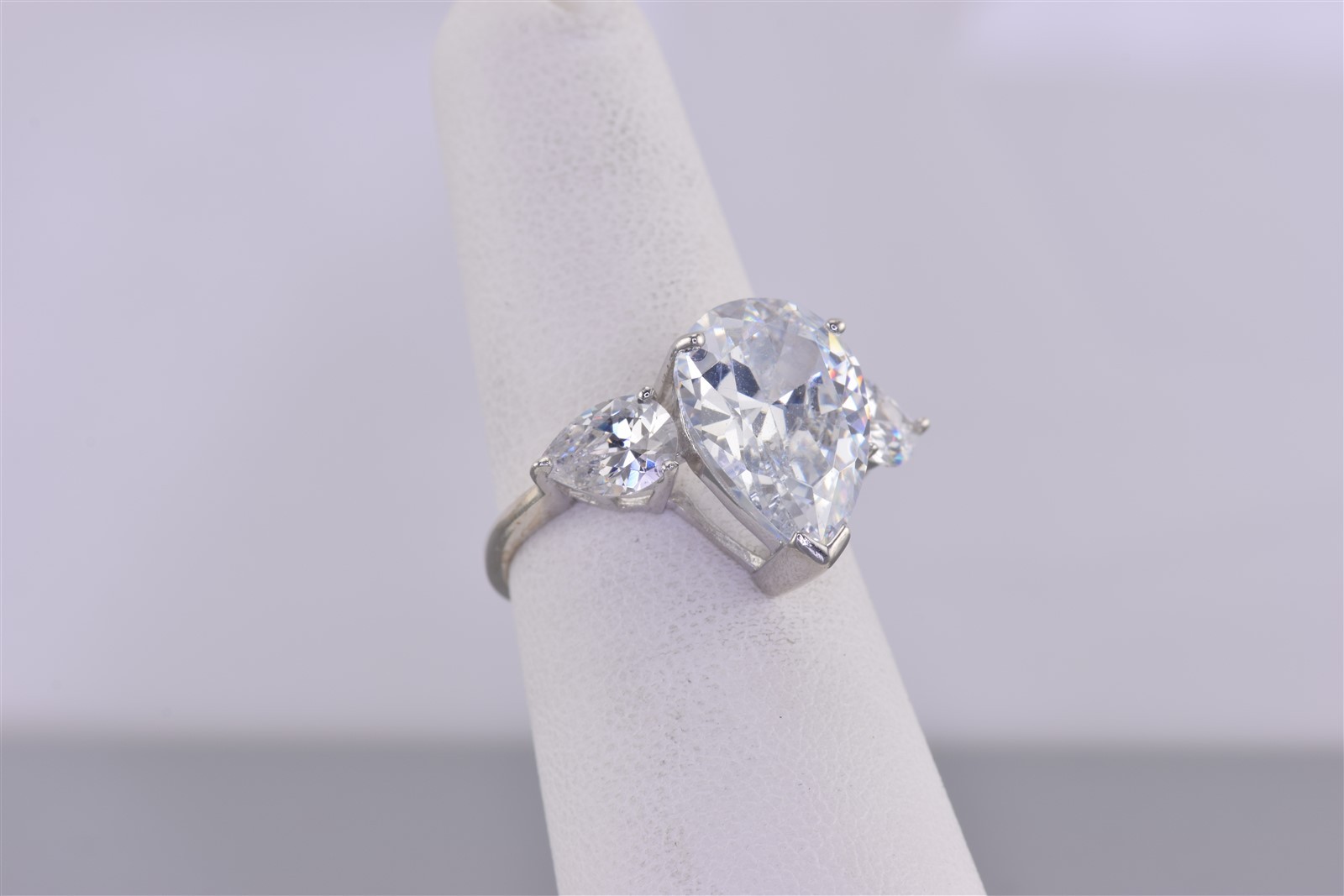 как выглядит Sterling Silver Pear Cut Cubic Zirconia Solitaire Accented Band Ring 925 Sz: 6 фото