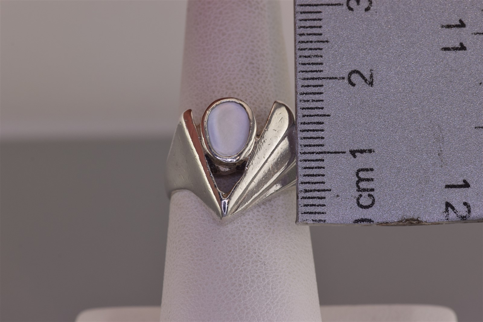 как выглядит Sterling Silver White Mother of Pearl Wedged Chevron Band Ring 7g 925 Sz: 7 фото