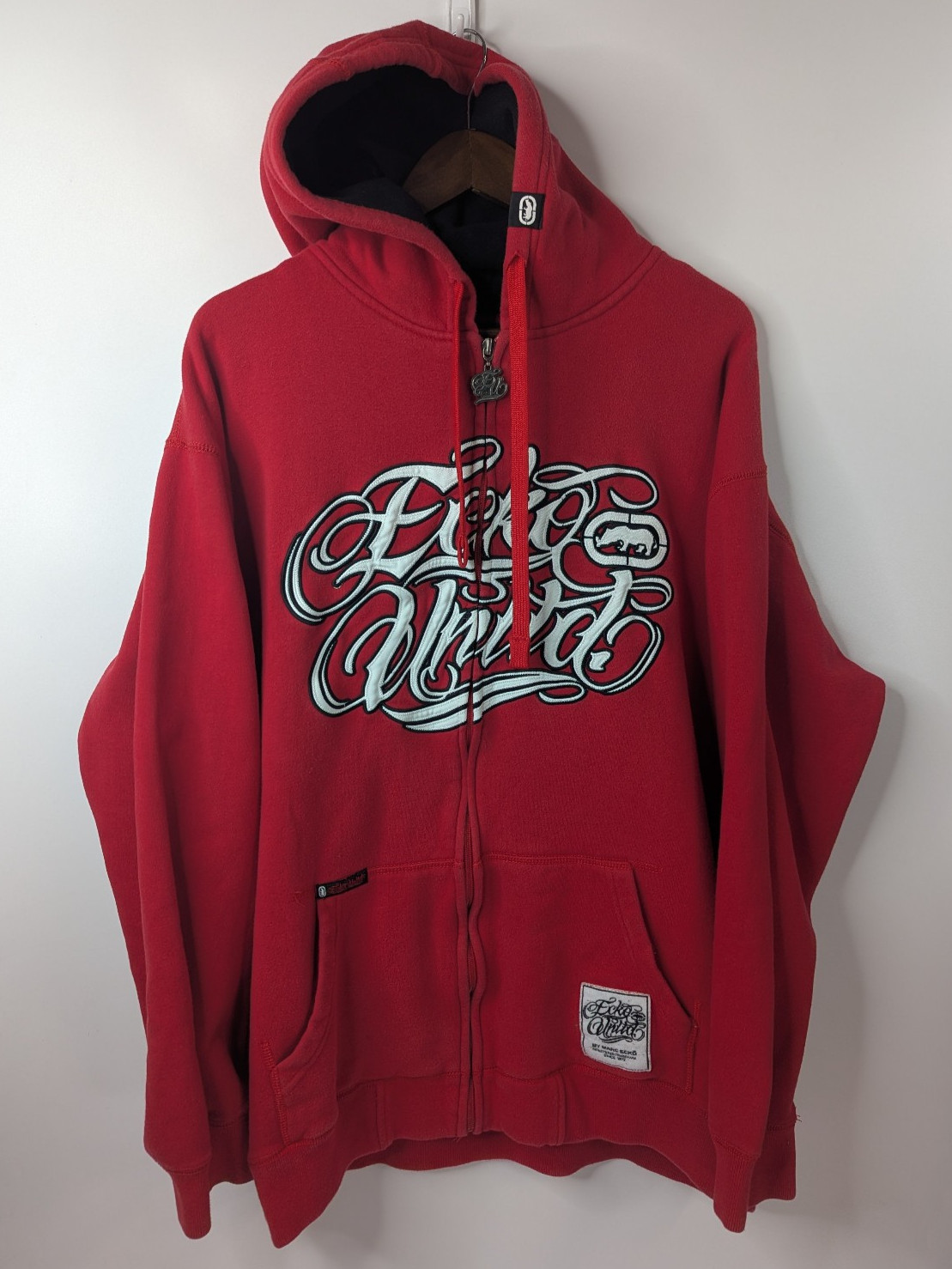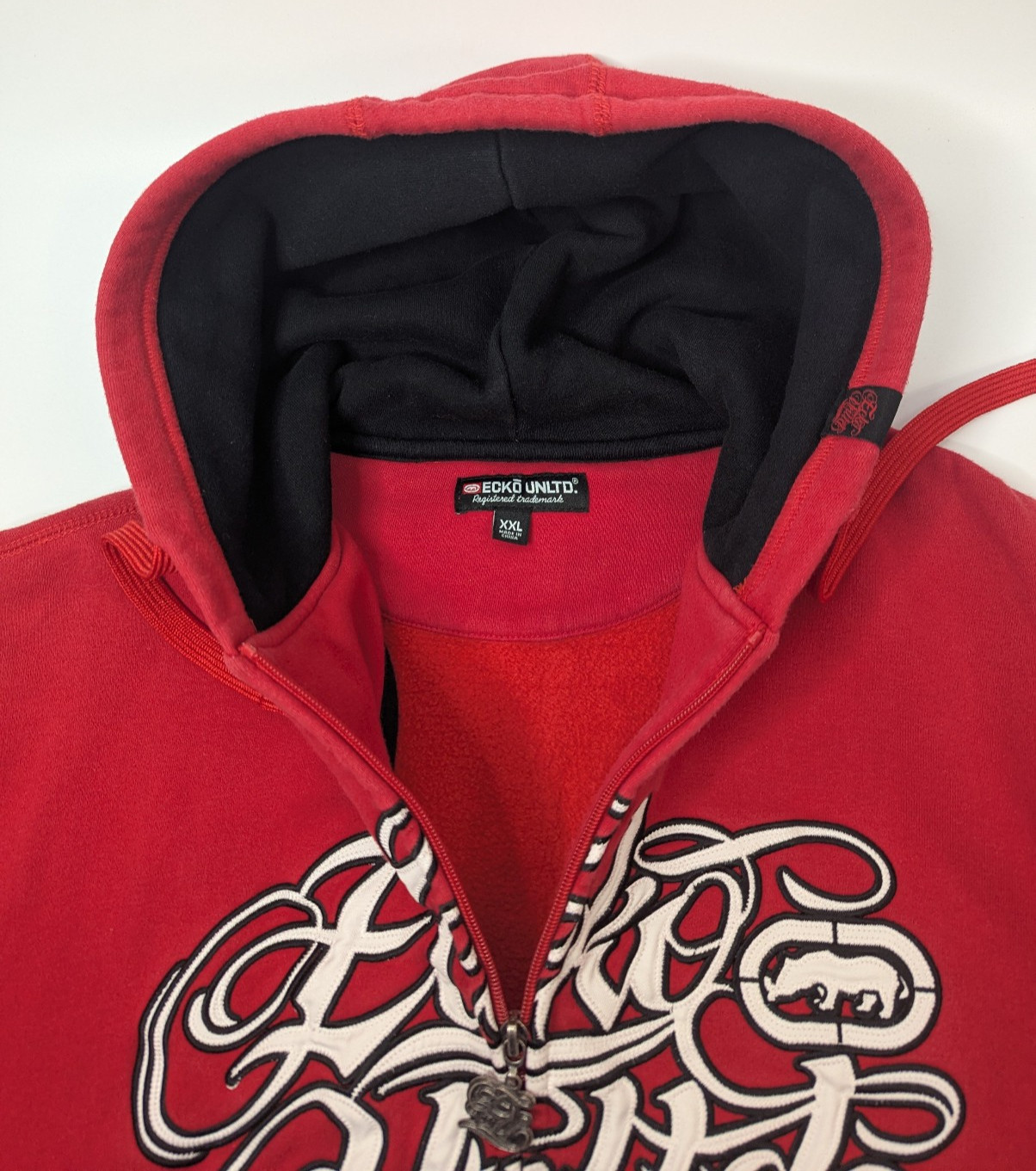 Vintage Y2K Ecko Unltd. Hoodie Mens 2XL Red Full Zip Skater Hip Hop Embroidered