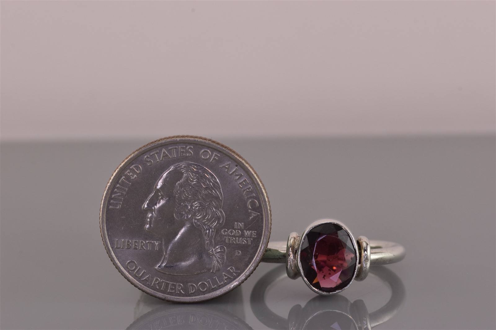 как выглядит Sterling Silver Collared Oval Purple Amethyst Rounded Band Ring 925 Sz: 8 фото