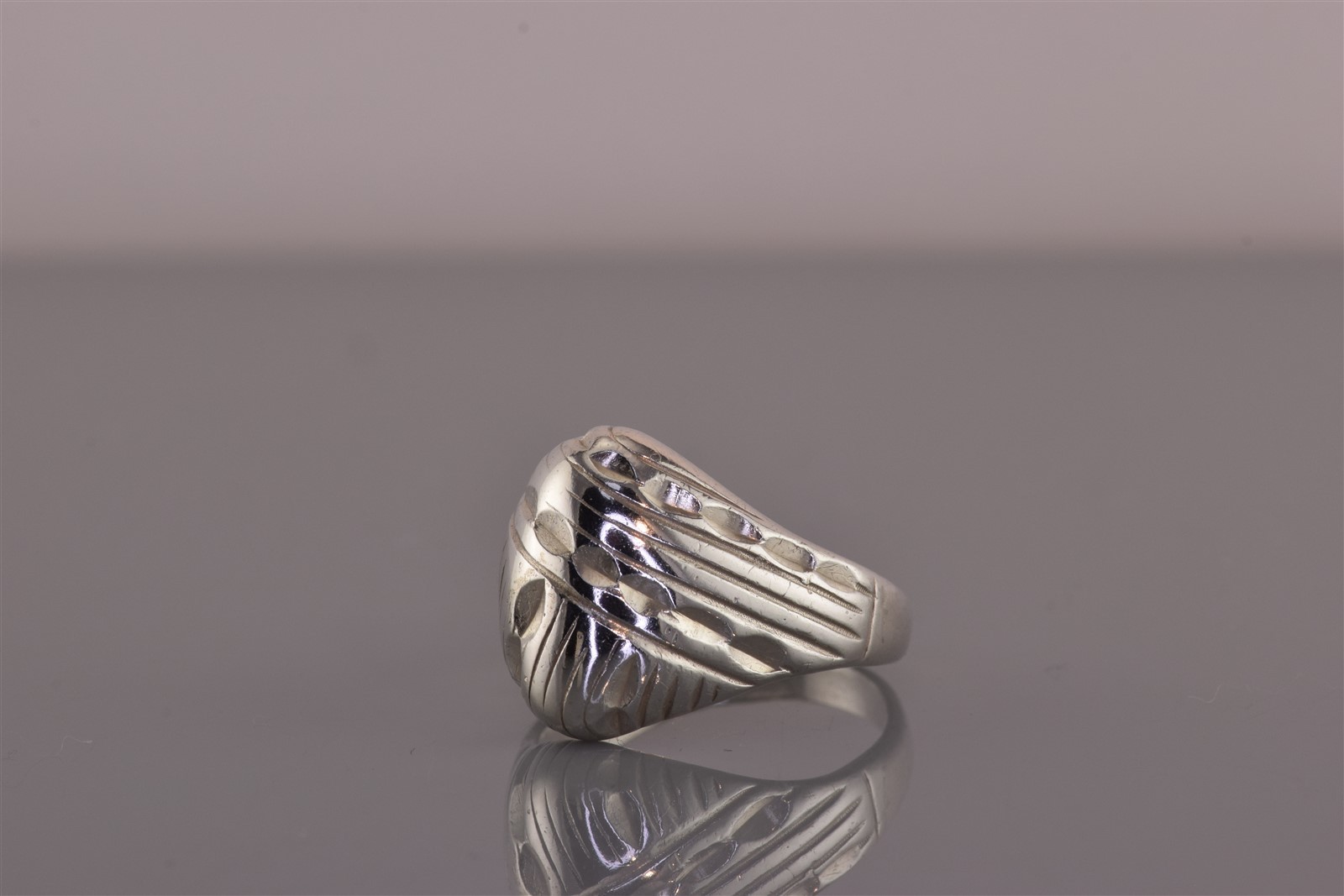 Sterling Silver 15mm Ribbed Notched Tapered Dome Band Ring 925 Sz: 7