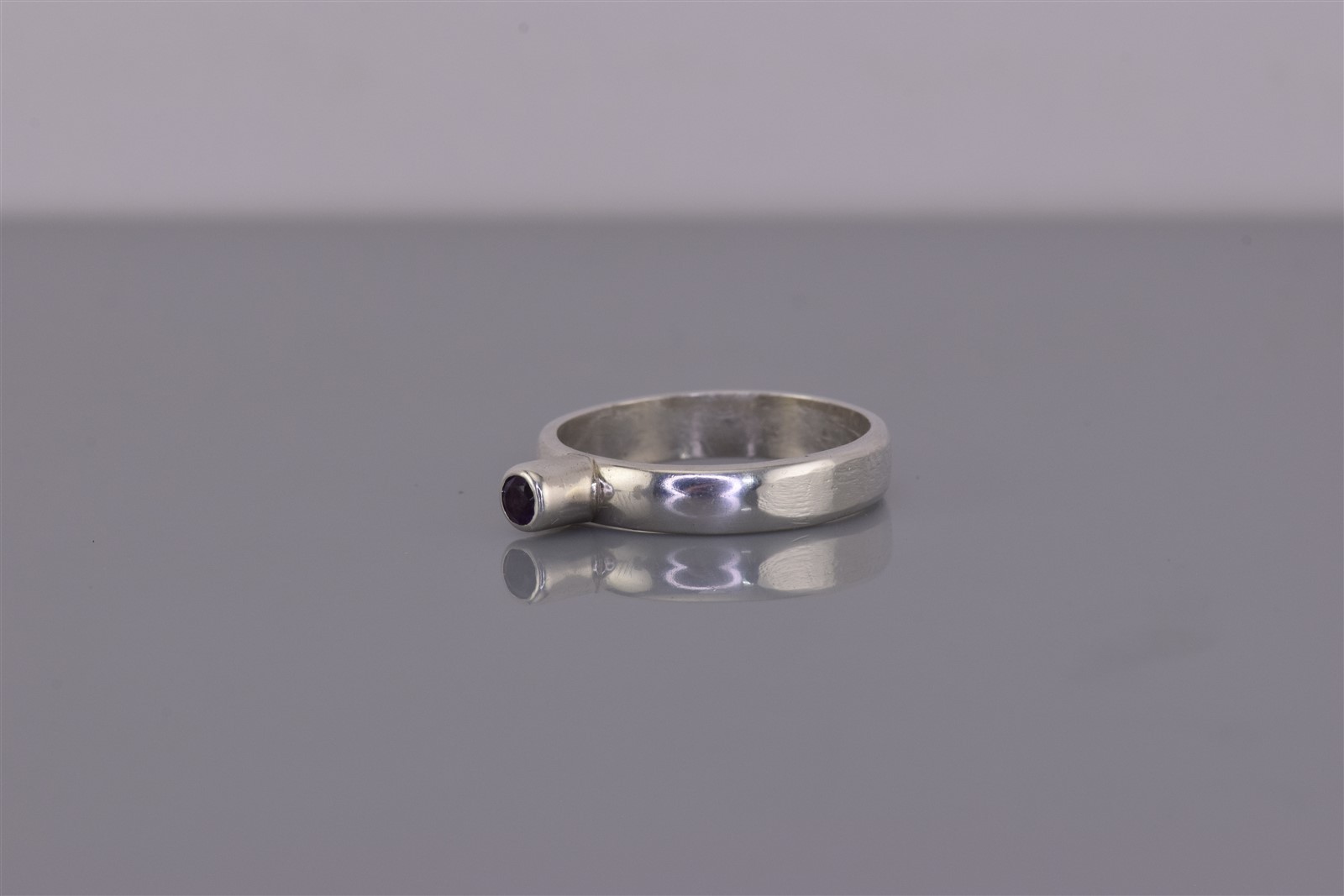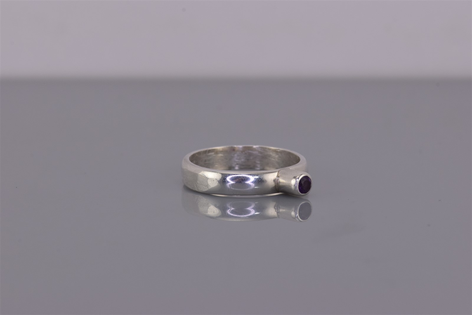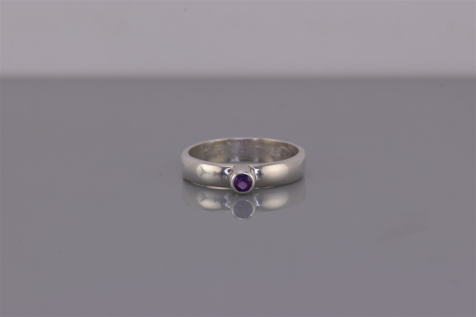 как выглядит Sterling Silver Tall Raised Bezel Purple Amethyst Band Ring 925 Sz: 7 фото
