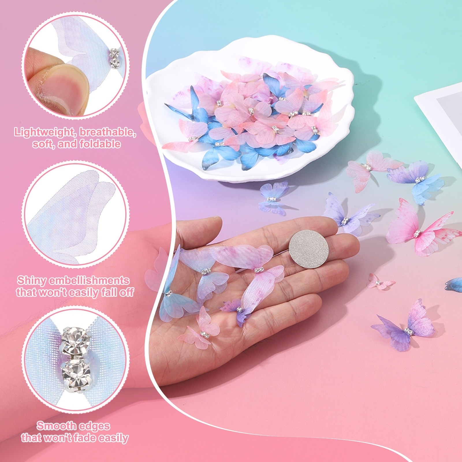 25Pcs Organza Fabric Butterflies,30mm 3D Sheer Mesh Butterfly, Purple