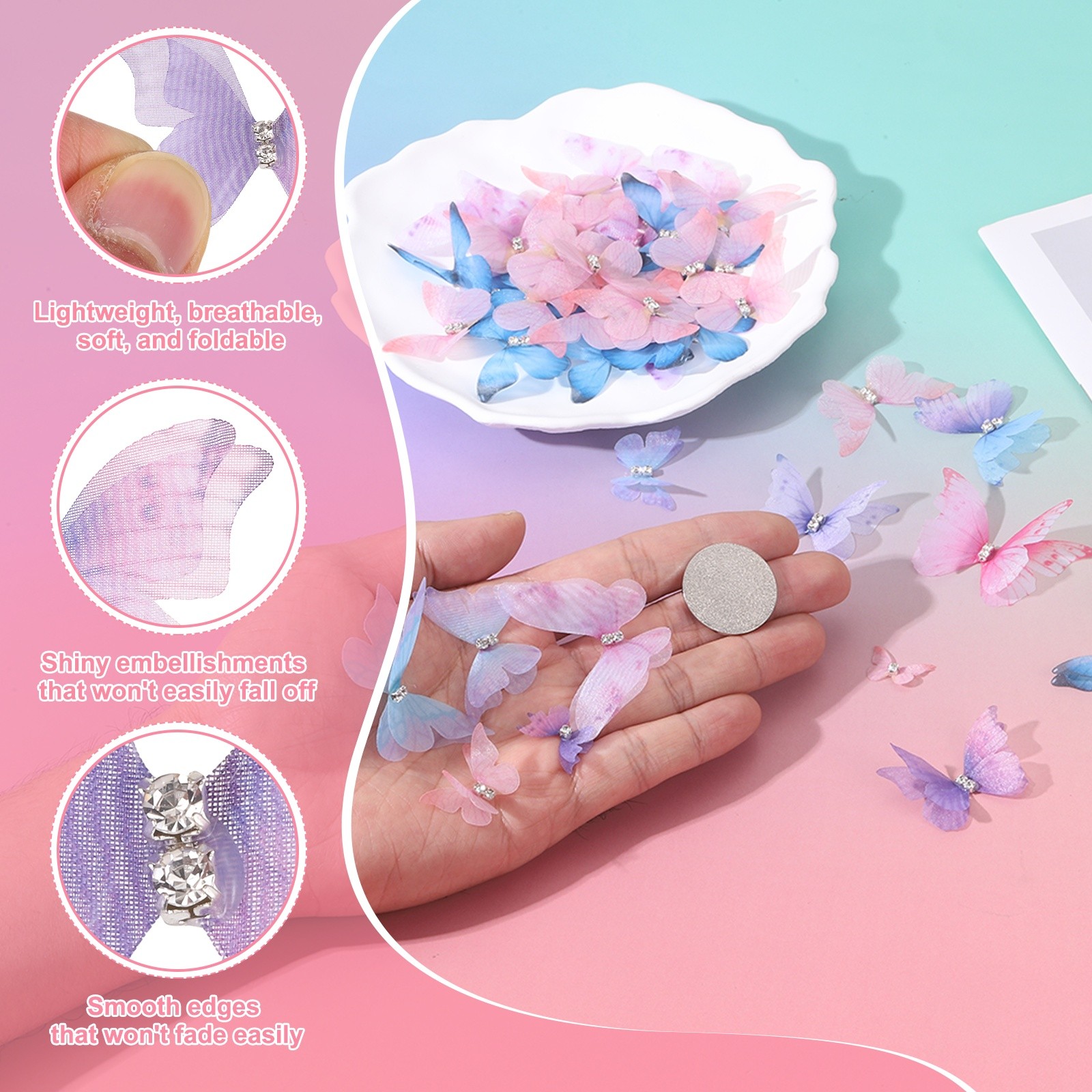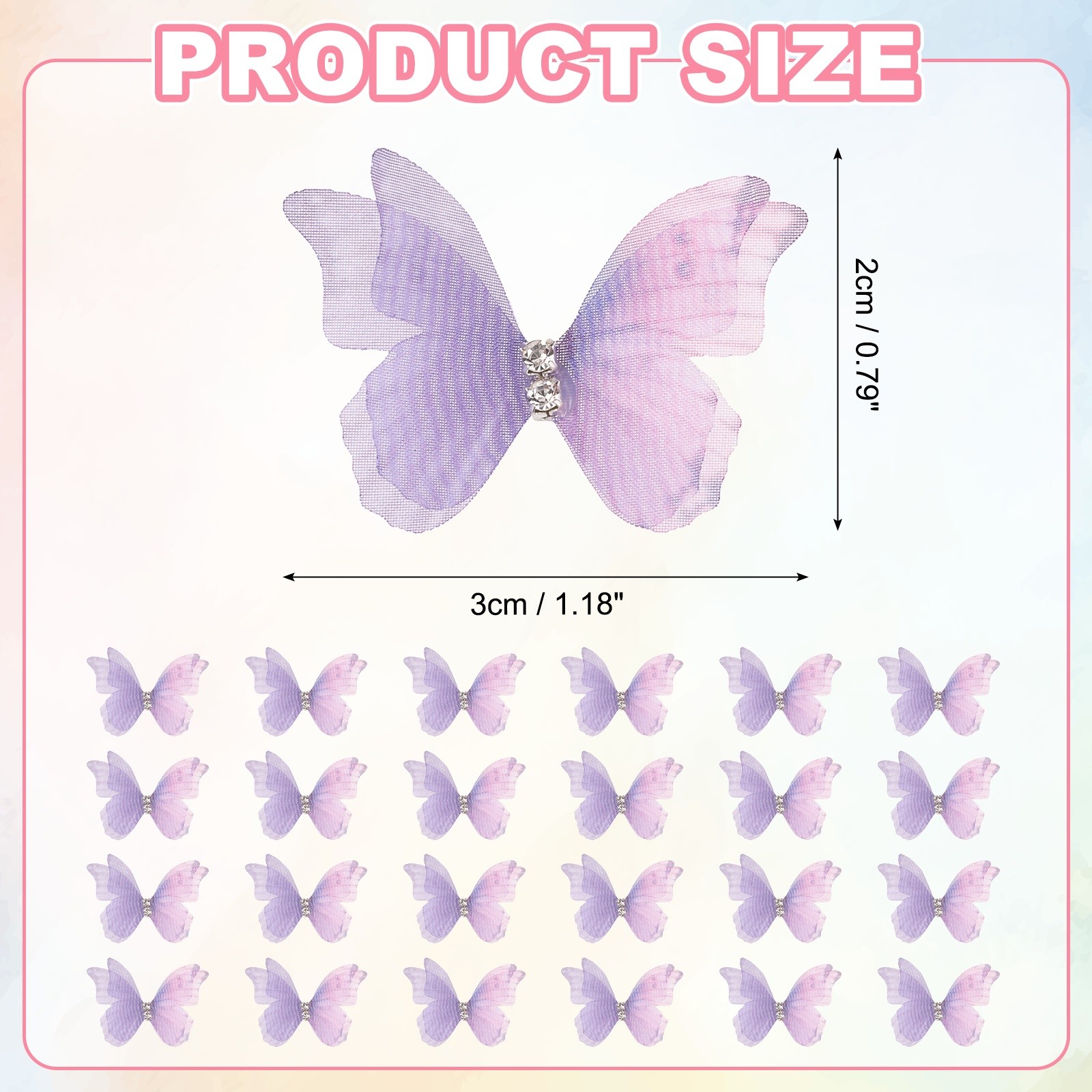 25Pcs Organza Fabric Butterflies,30mm 3D Sheer Mesh Butterfly, Deep Purple