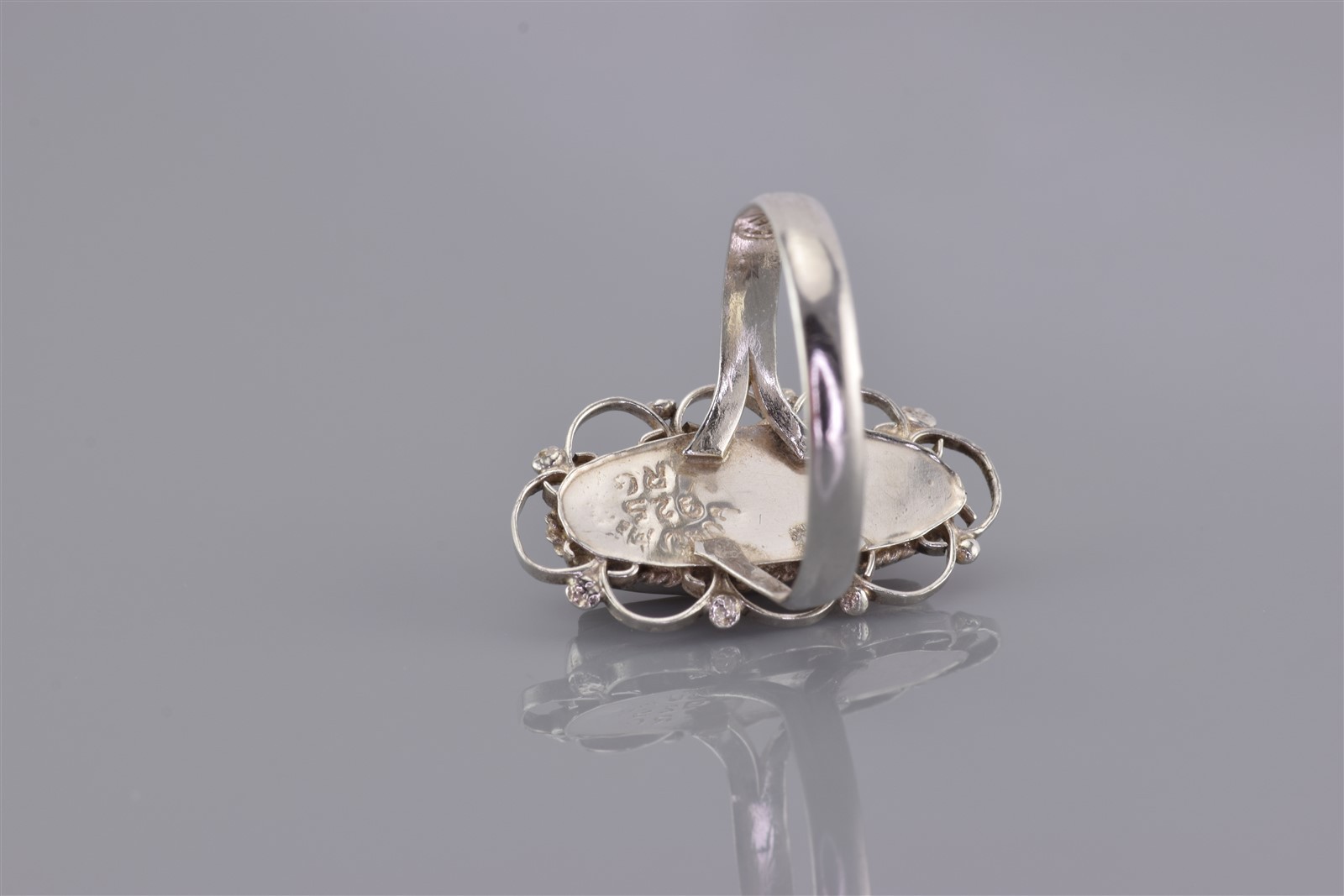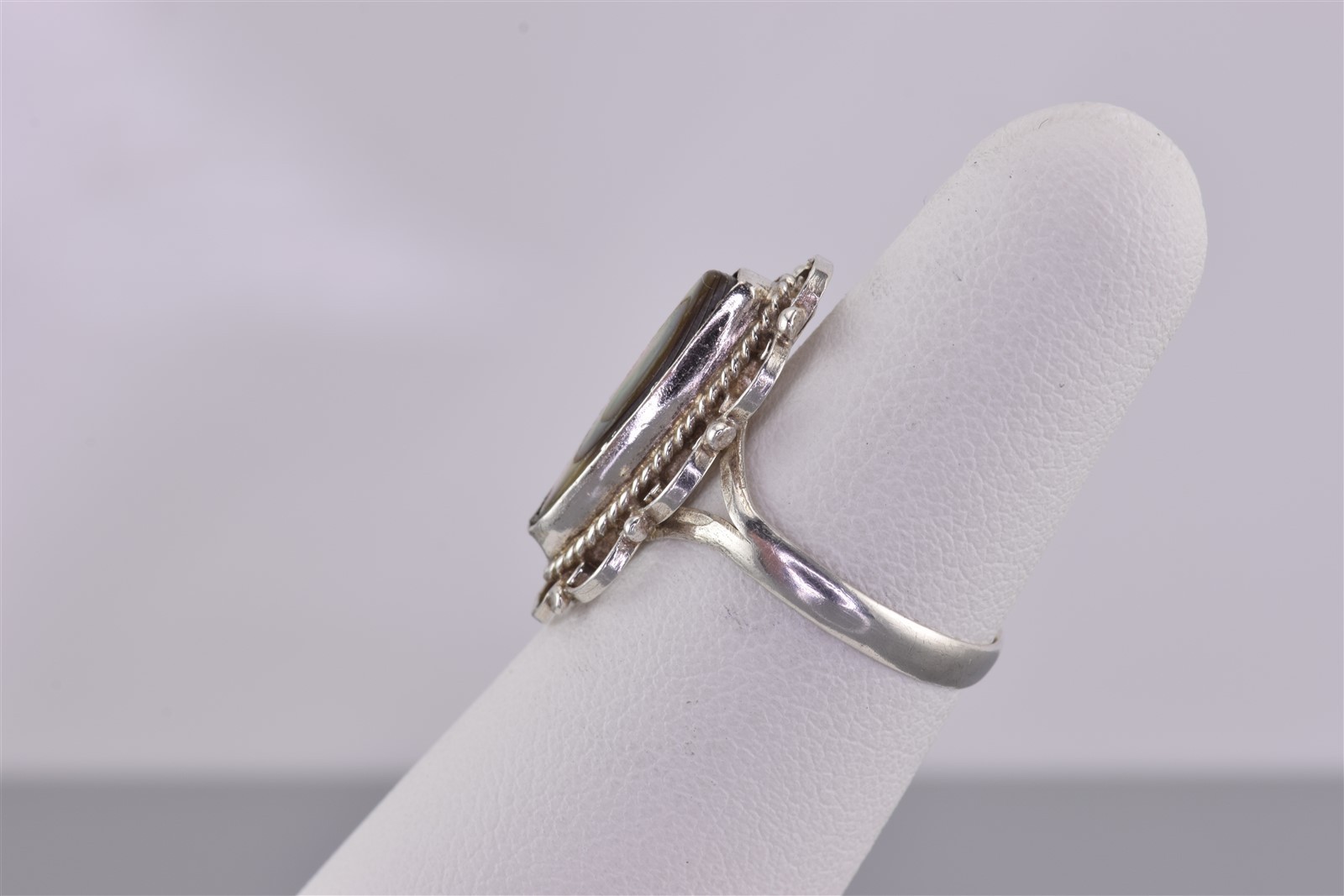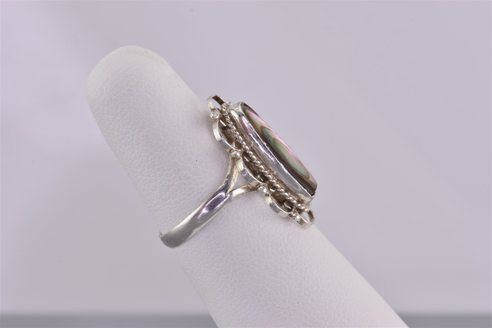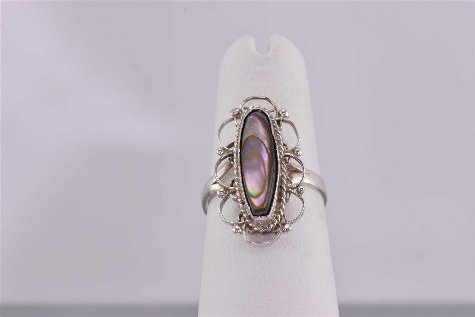 как выглядит Sterling Silver Lacy Scrolled Looped Bezel Abalone Band Ring 925 Sz: 5 фото