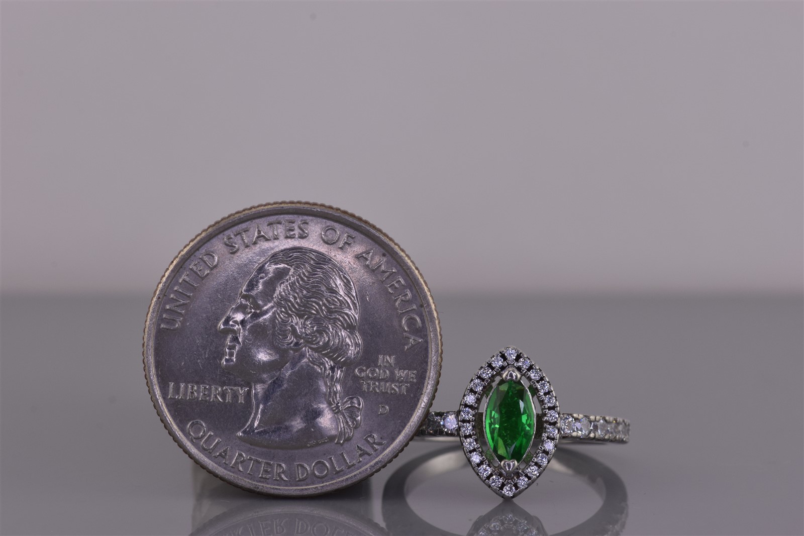 как выглядит Sterling Silver Green Marquise Cubic Zirconia Halo Accented Band Ring 925 Sz: 6 фото