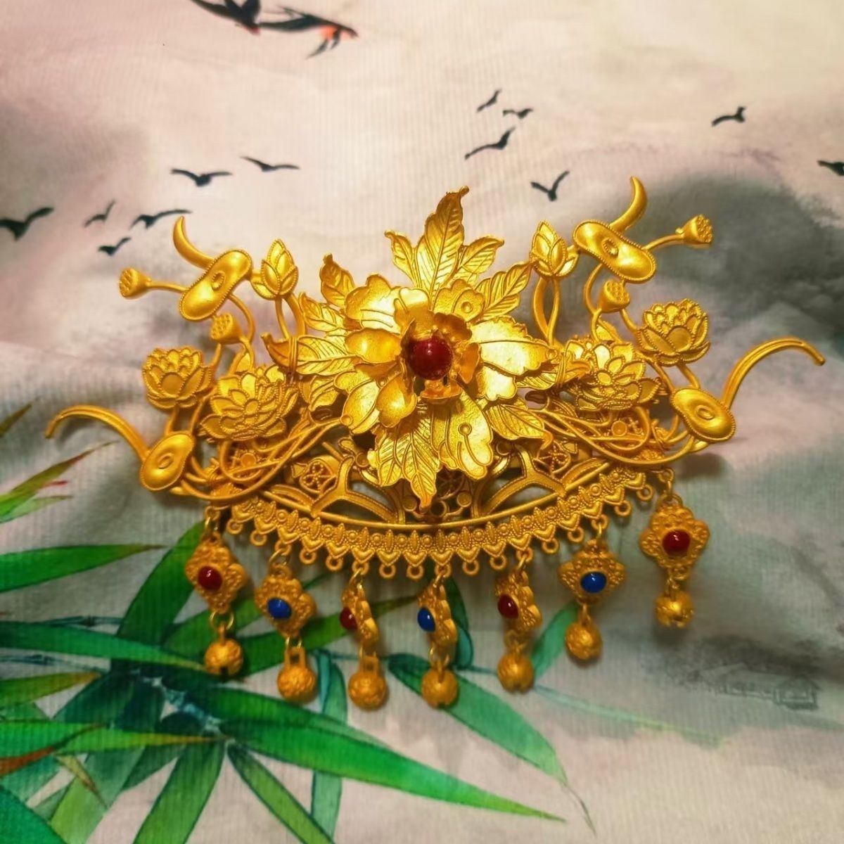 Gold Plated Tassel Hair Crown Chinese Style Hanfu Headpiece Headband
