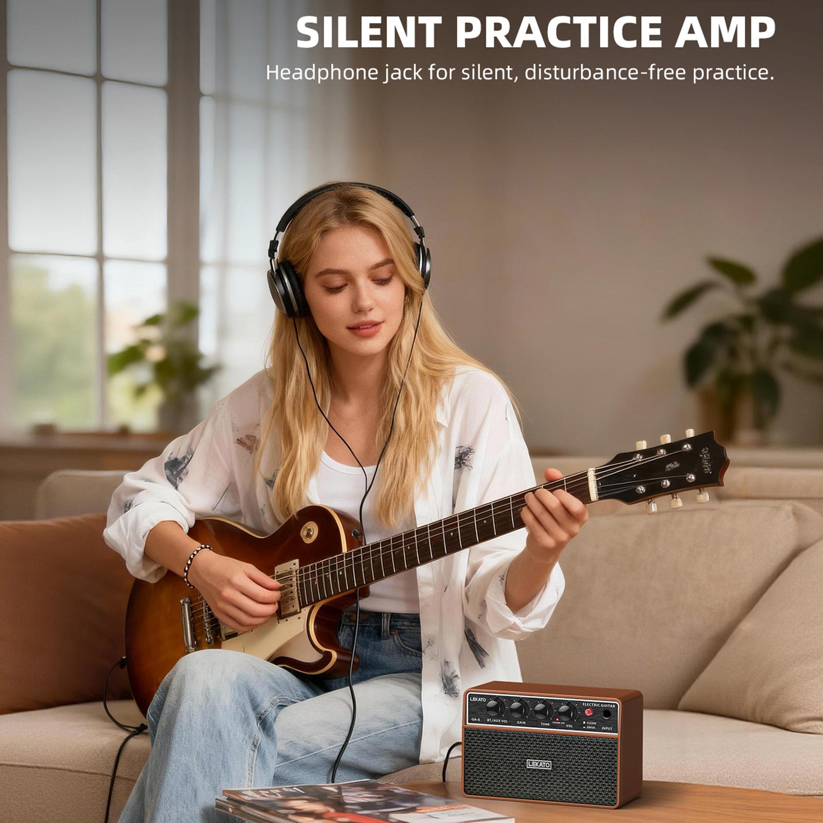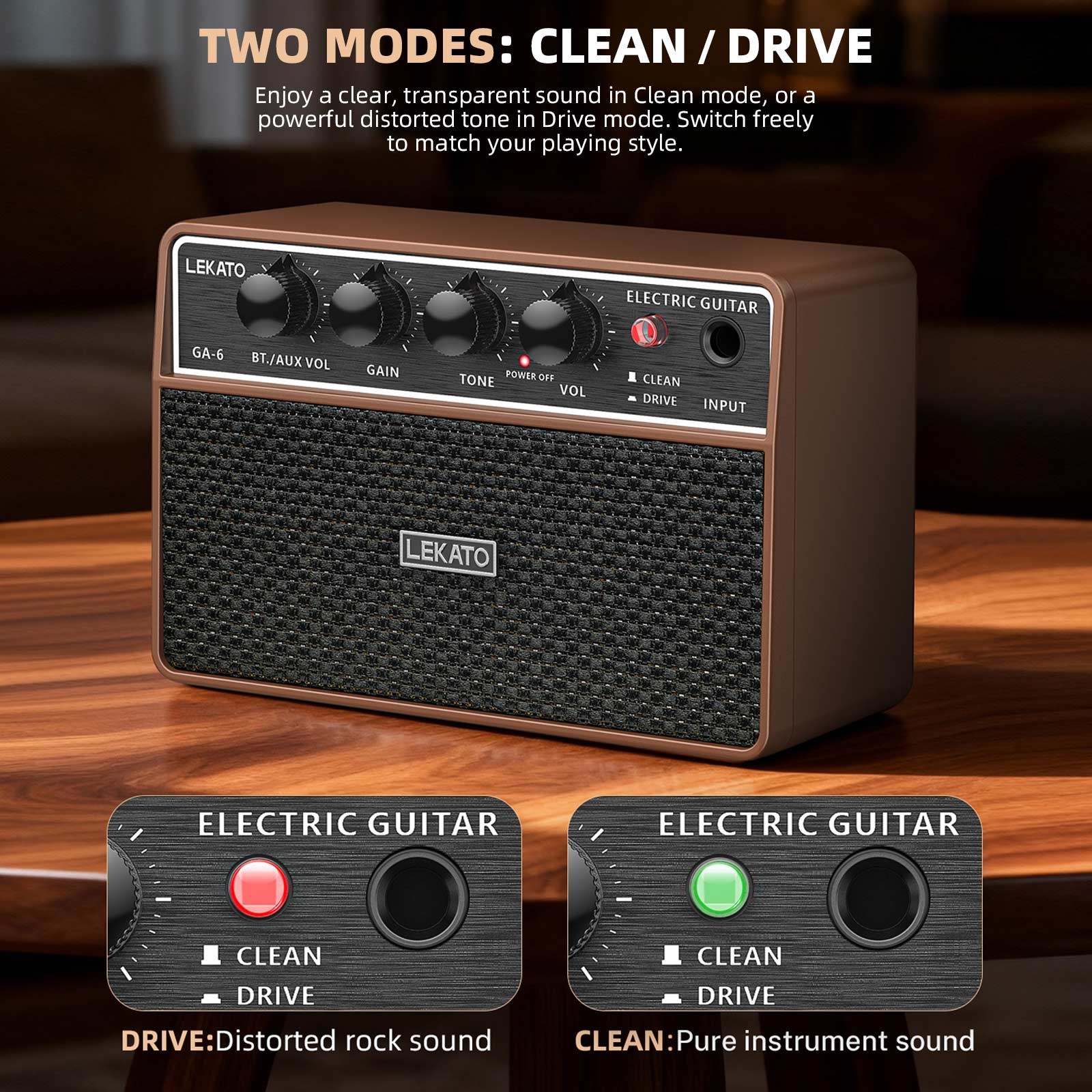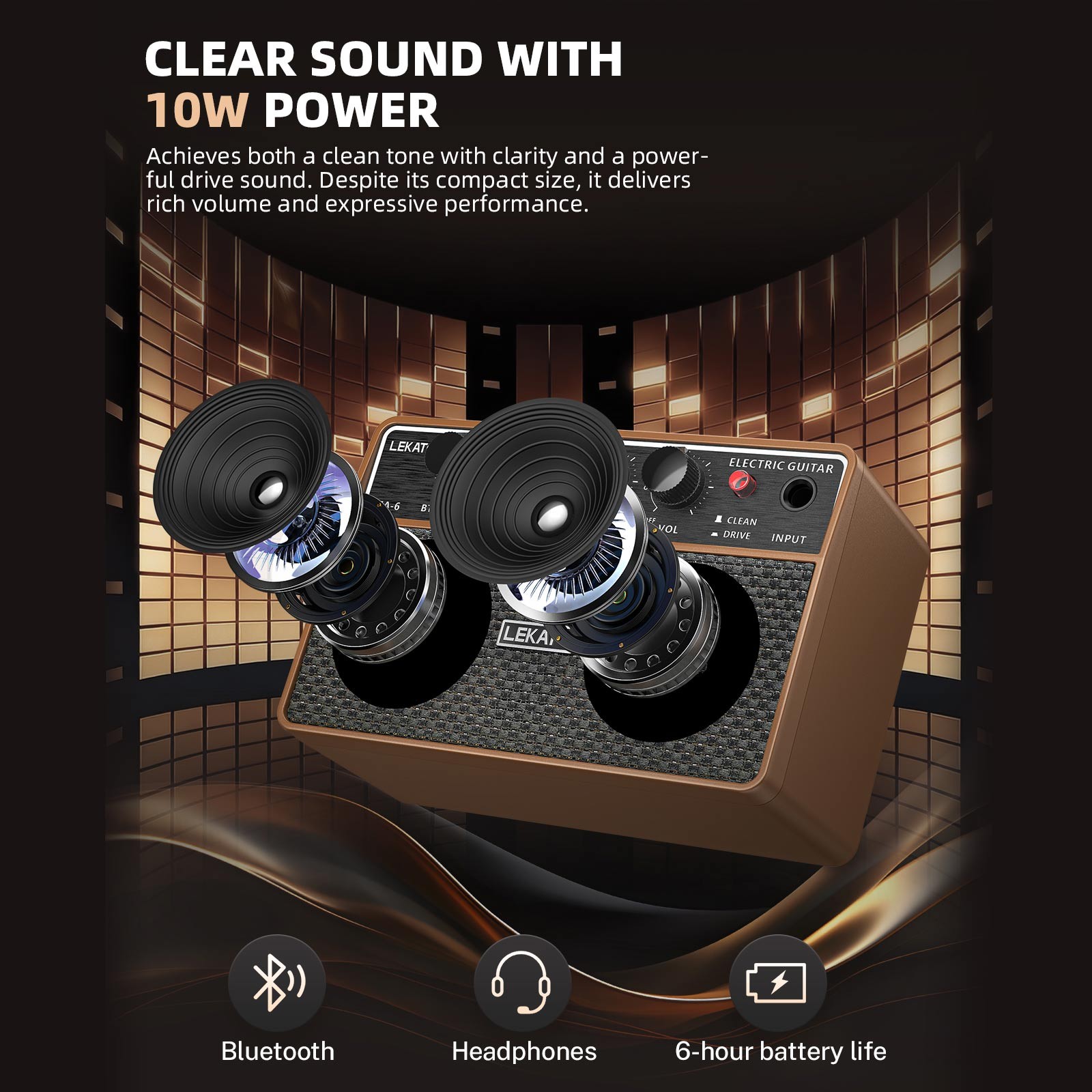 LEKATO 10W Guitar Amplifier bluetooth Rechargeable Practice Electric Guitar AMP