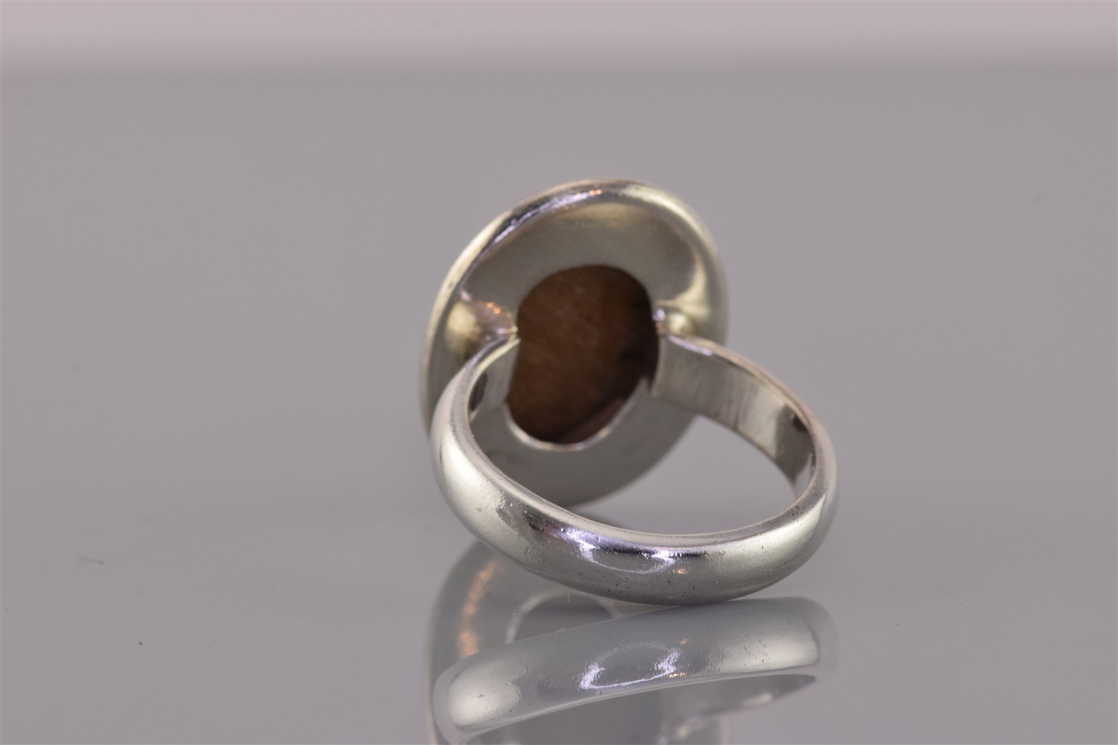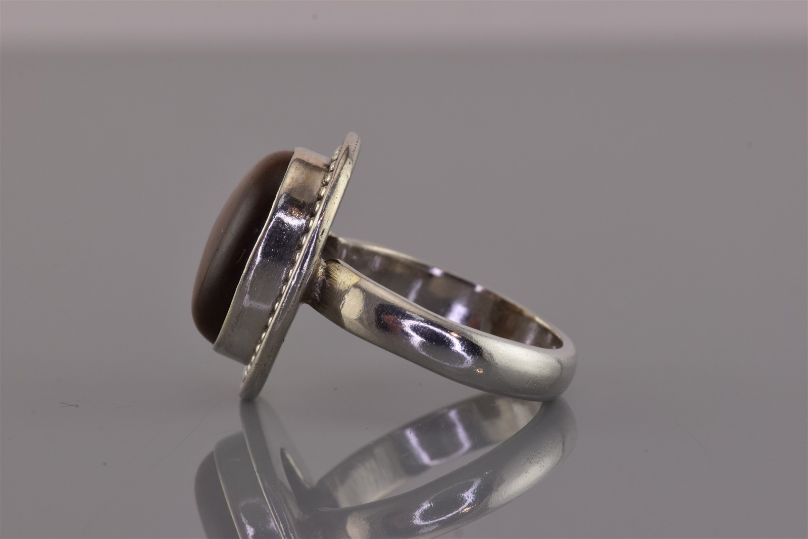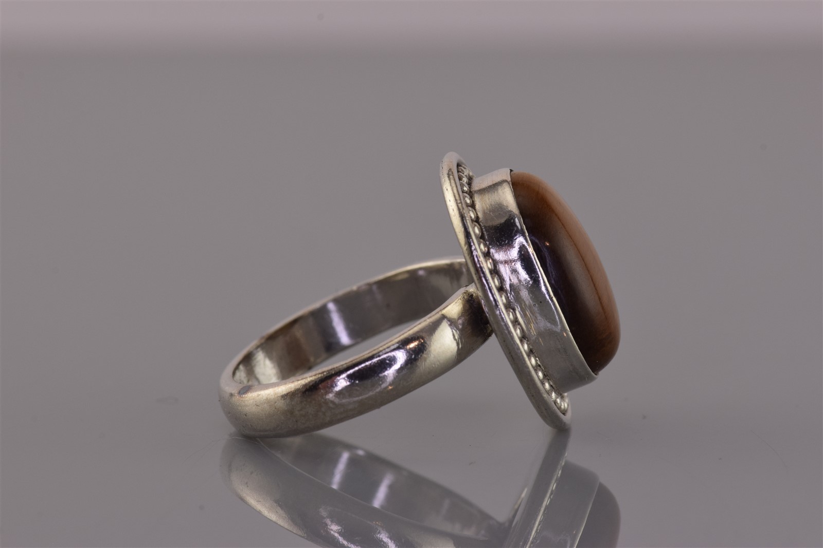 как выглядит Sterling Silver Dotted Bezel Tigers Eye Cabochon Statement Band Ring 925 Sz: 8 фото