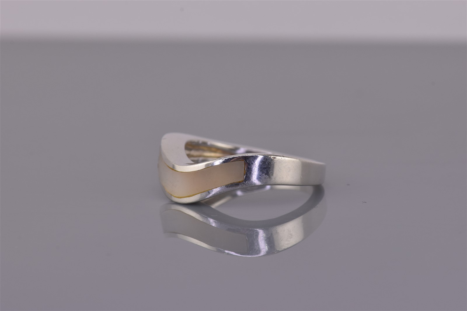 как выглядит Sterling Silver Wavy White Mother of Pearl Inlay Band Ring 925 Sz: 8 фото