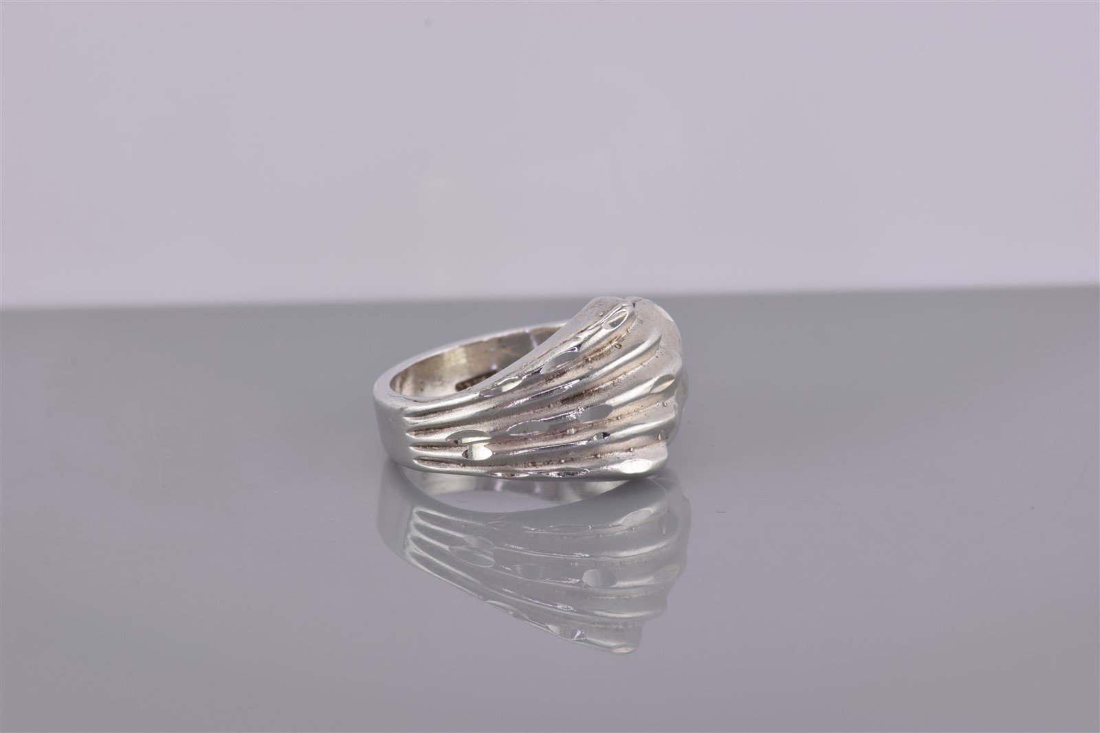 как выглядит Sterling Silver 12mm Fanned Clam Shell Ribbed Tapered Band Ring 925 Sz: 6 фото