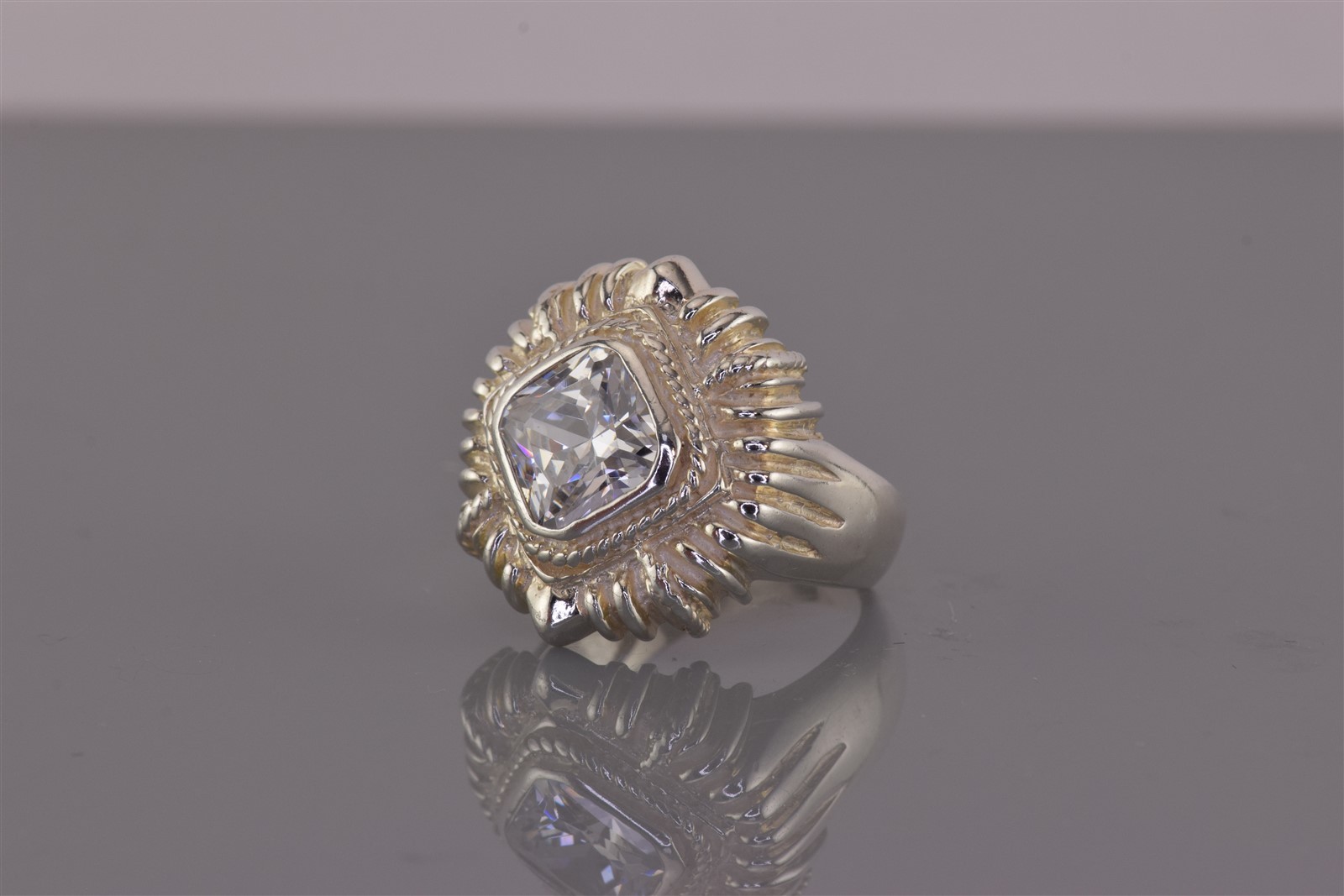 Sterling Silver Cushion Cut Cubic Zirconia Flared Ribbed Band Ring 925 Sz: 7
