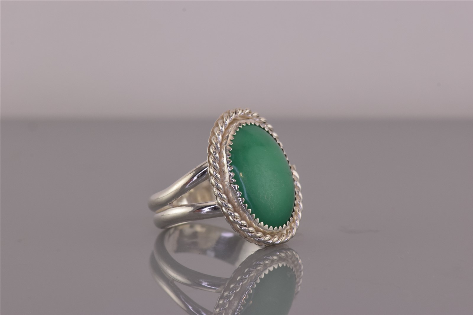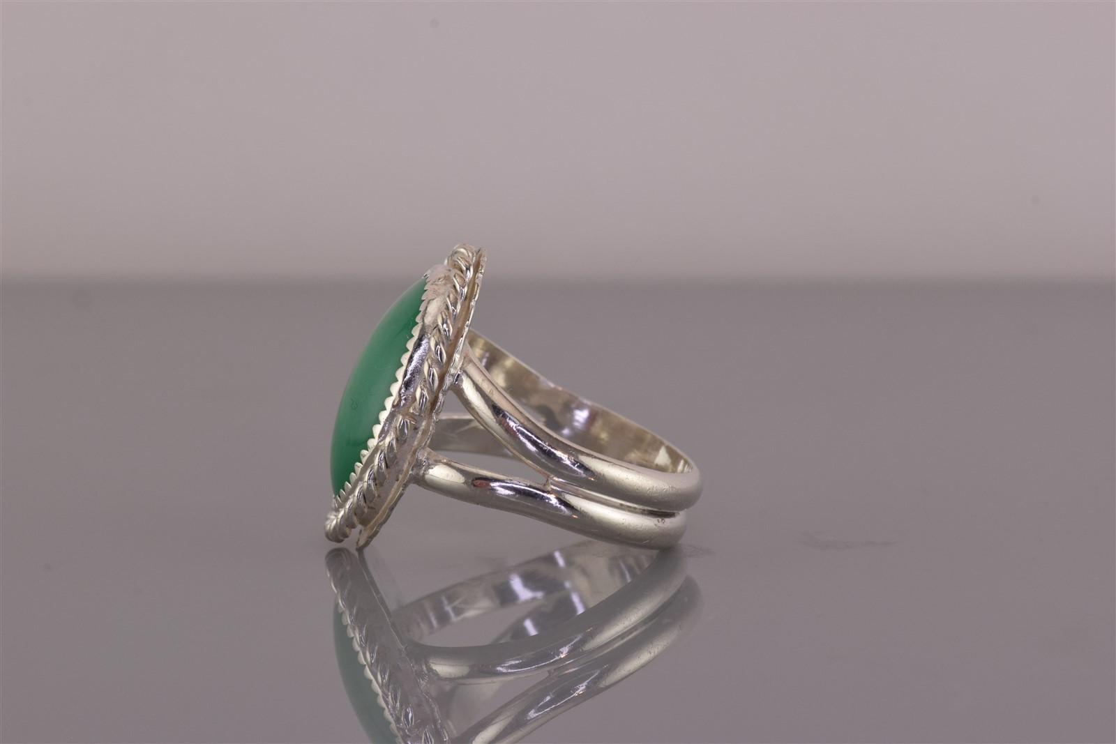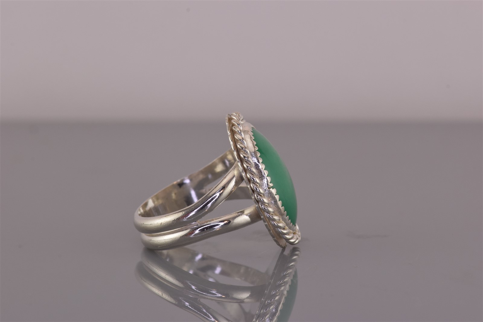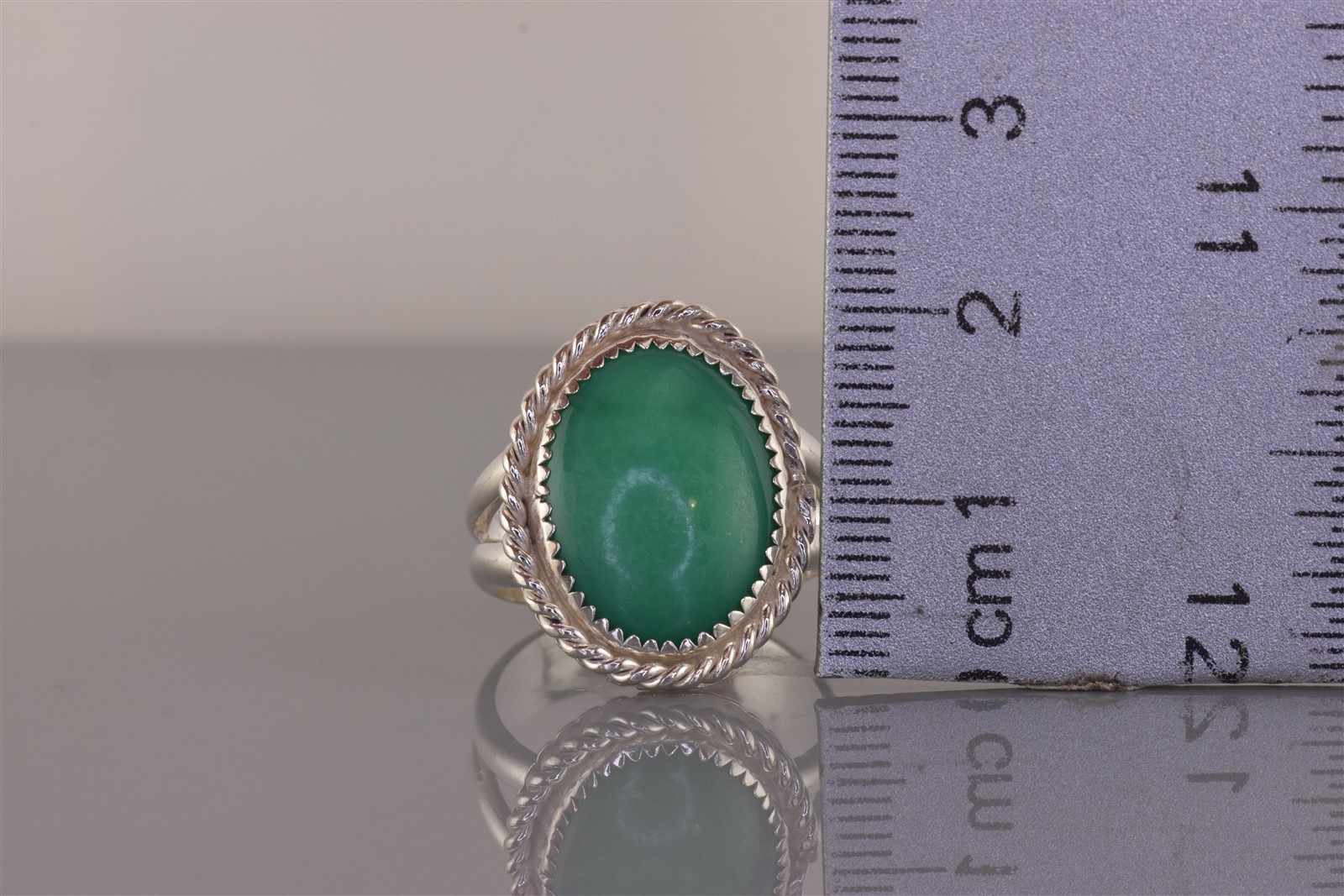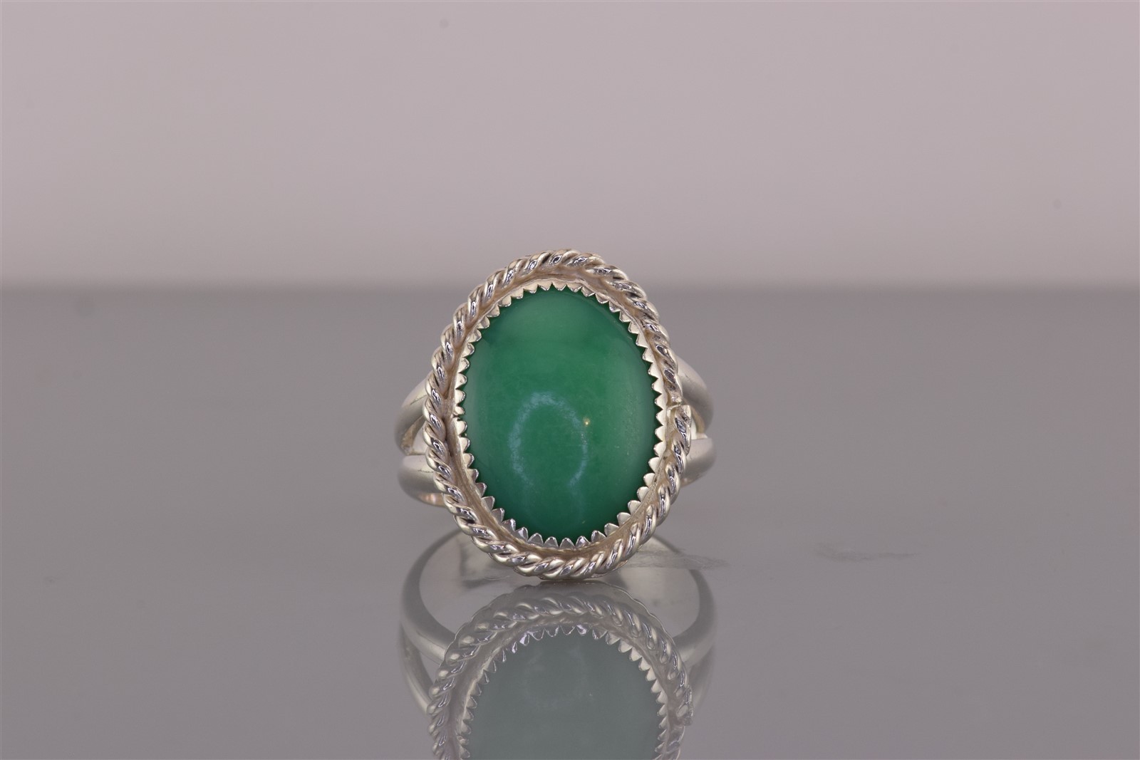 как выглядит Sterling Silver Oval Green Chalcedony Rope Trimmed Band Ring 925 Sz: 7 фото