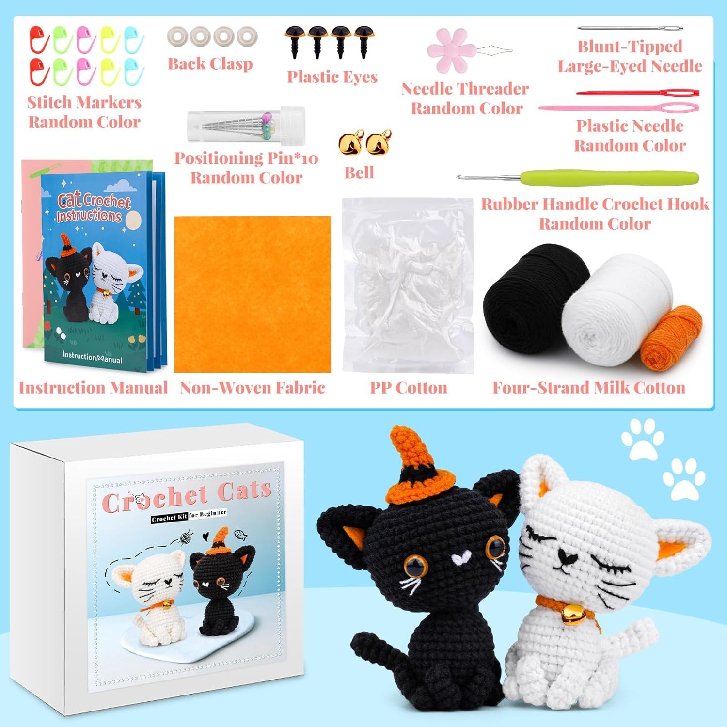 Crochet Kit for Beginners, Crochet Animal Kit, 2PCS Cat Starters Crochet Kits