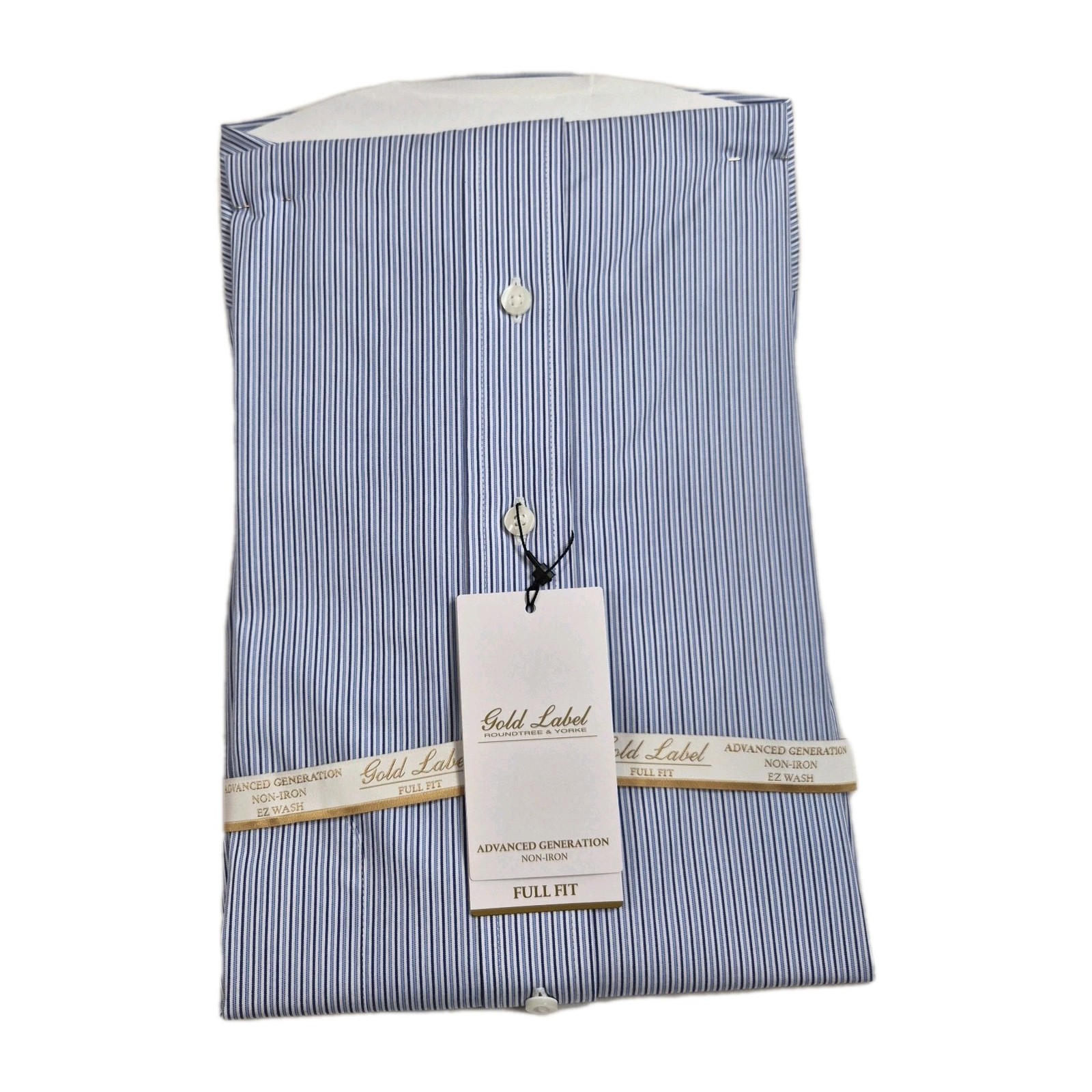 Roundtree Yorke Gold Label Men Shirt Size 16.5 33 Blue Striped Fullfit Poplin 60