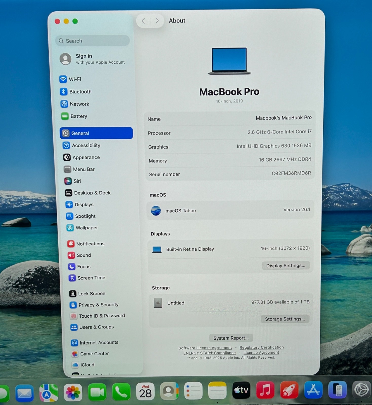 Apple MacBook Pro 16 2019 A2141 i7-9750H 2.60GHz 16 GB RAM 1 TB SSD AMD 5300M