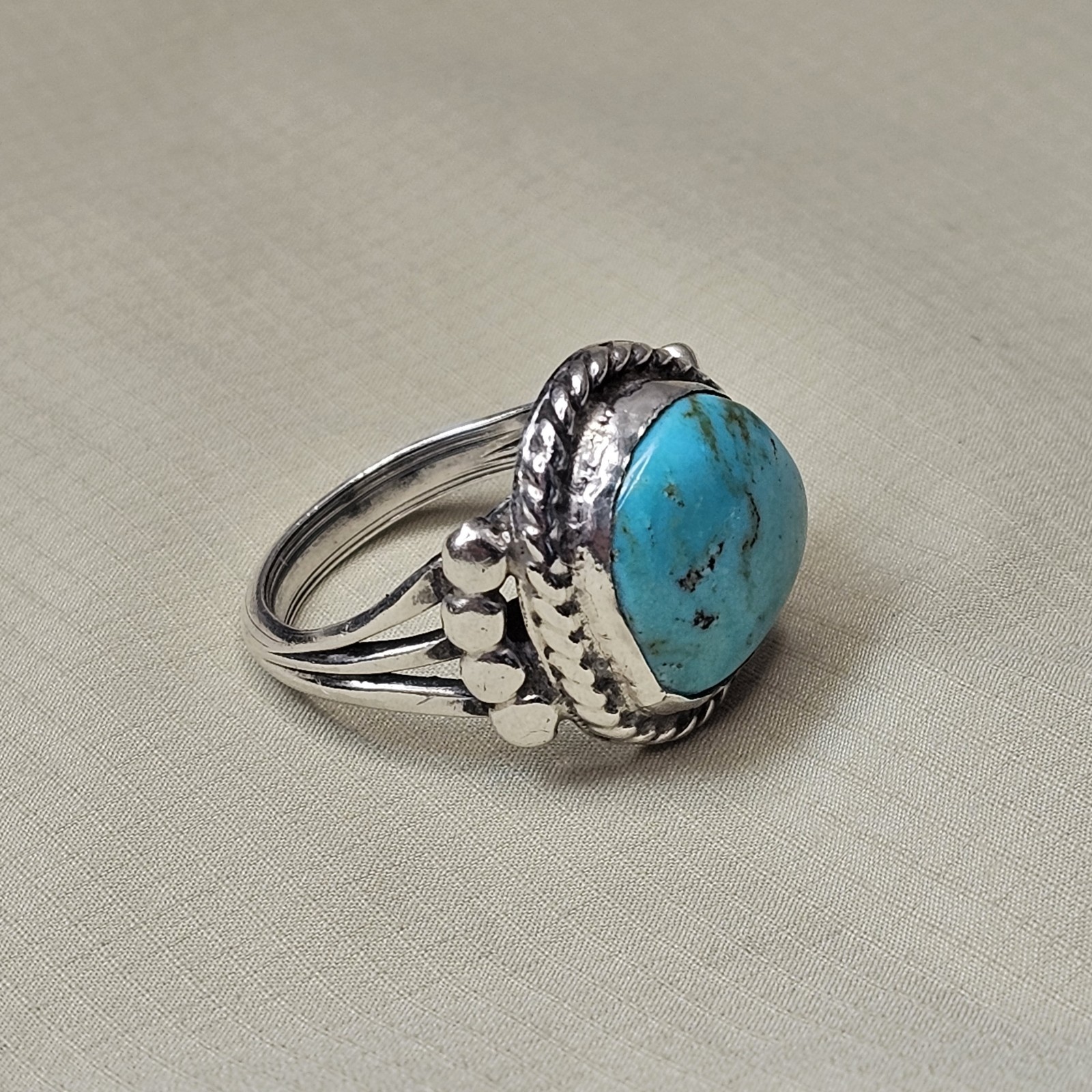 Vintage 925 Sterling Silver Turquoise Southwest Style HandmadeRing Size 7.5 - 7g