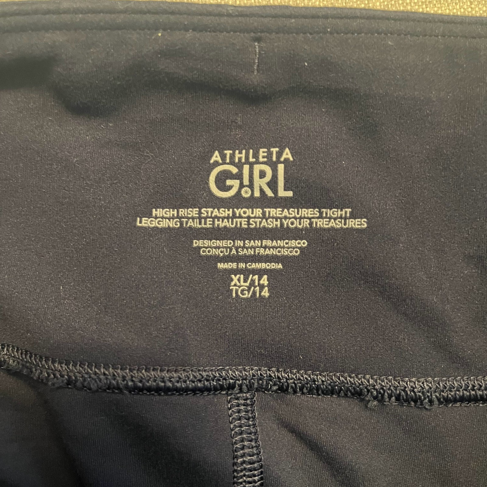 Athleta Girl High Rise Stash Your Treasures Navy Leggings Athletic XL 14
