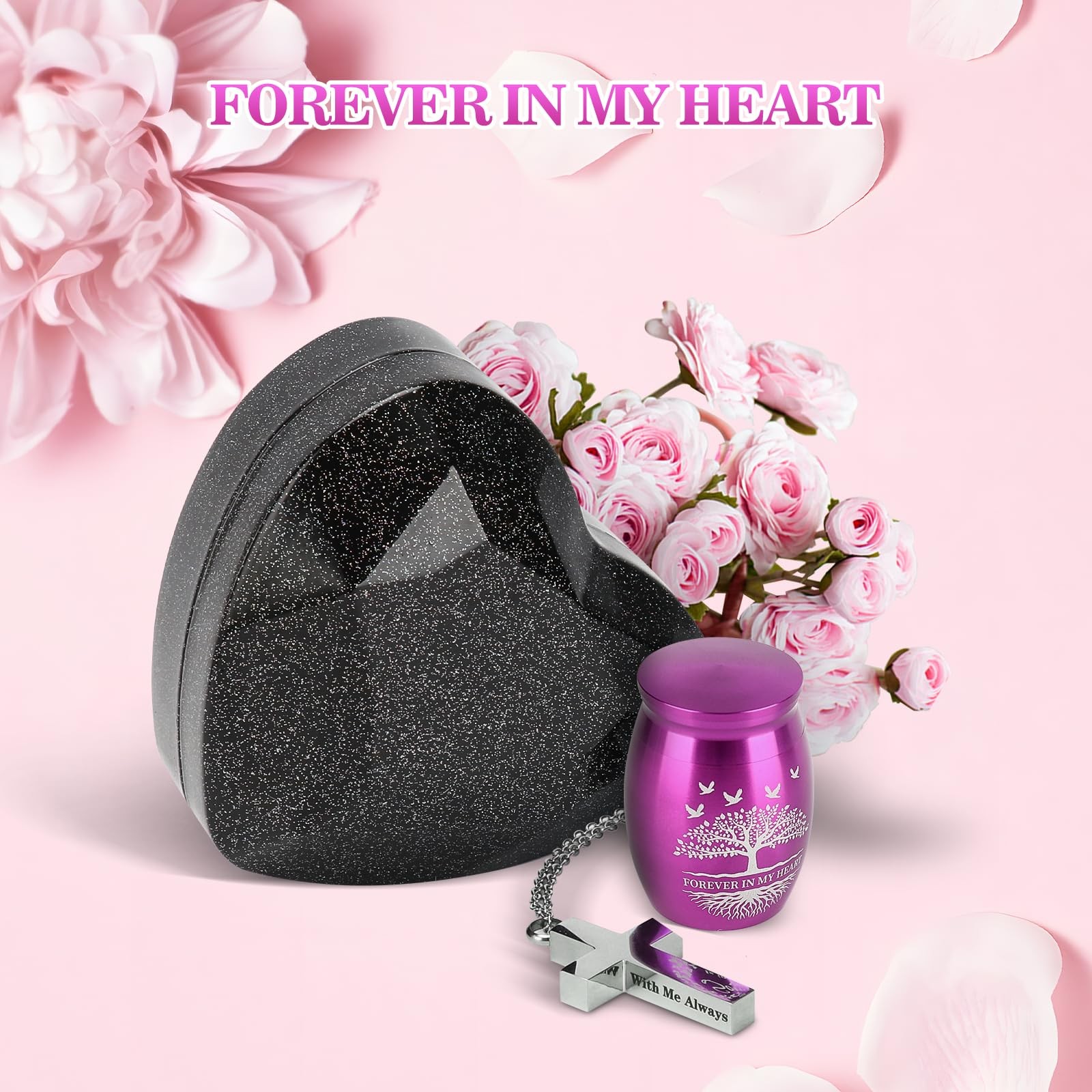 Small Urns for Human Ashes Keepsake with Heart Box, Urn Necklace and Purple