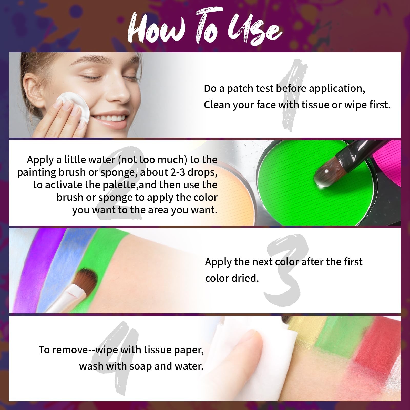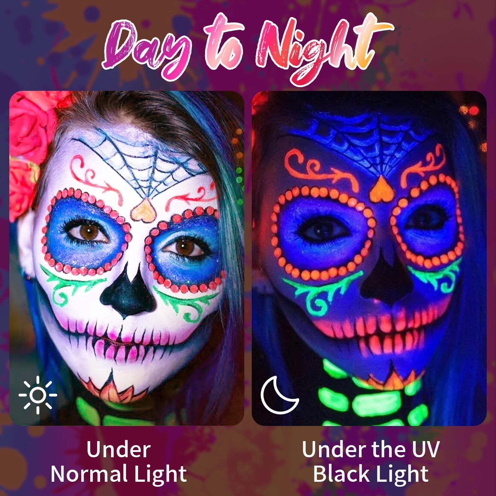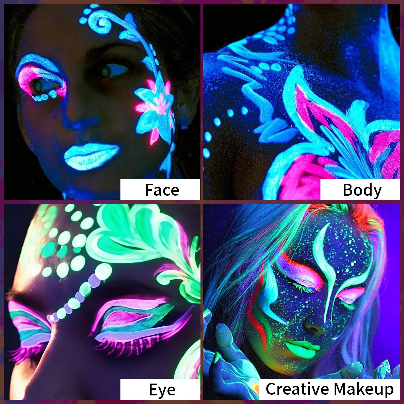 8 Colors UV Paint Palette,Glow in The UV Body Paint,8 Colors Neon Fluorescent...