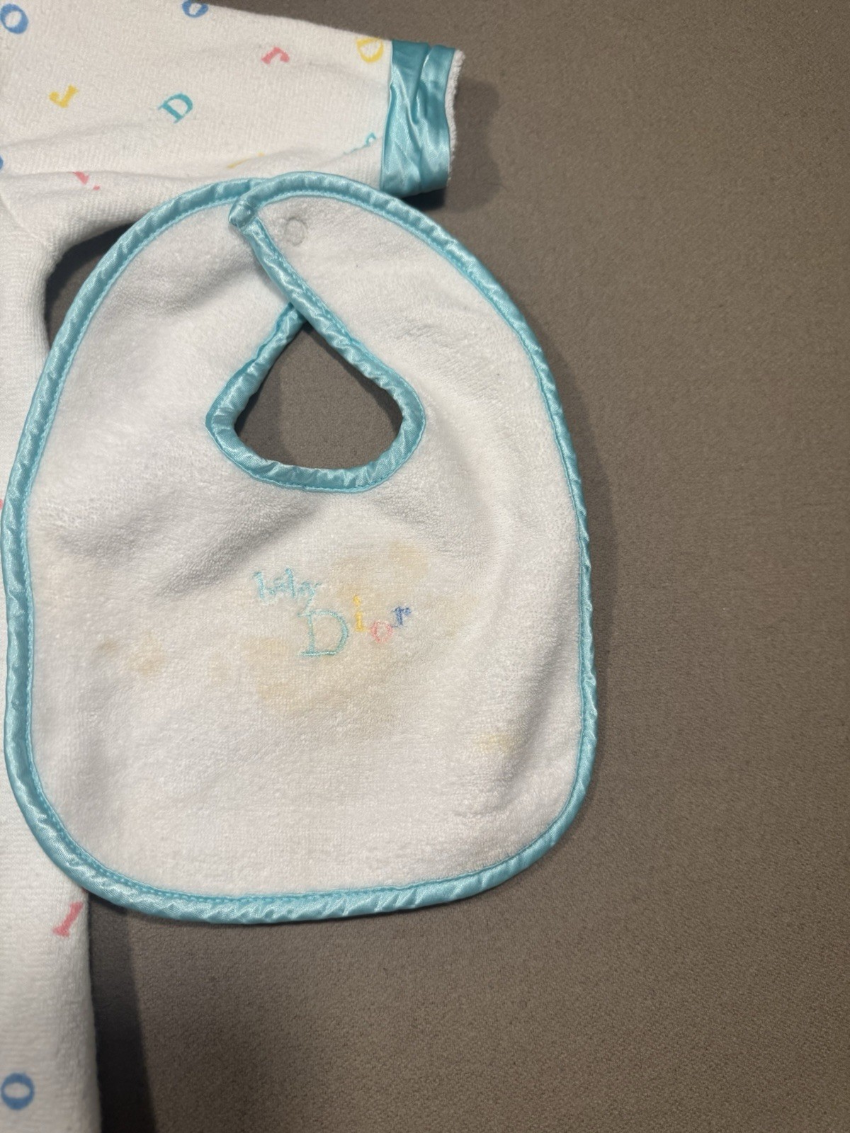 как выглядит Vintage Baby Dior, Baby Sack, Sleeper Pajamas, And Bib Terry Cloth Preowned 1994 фото