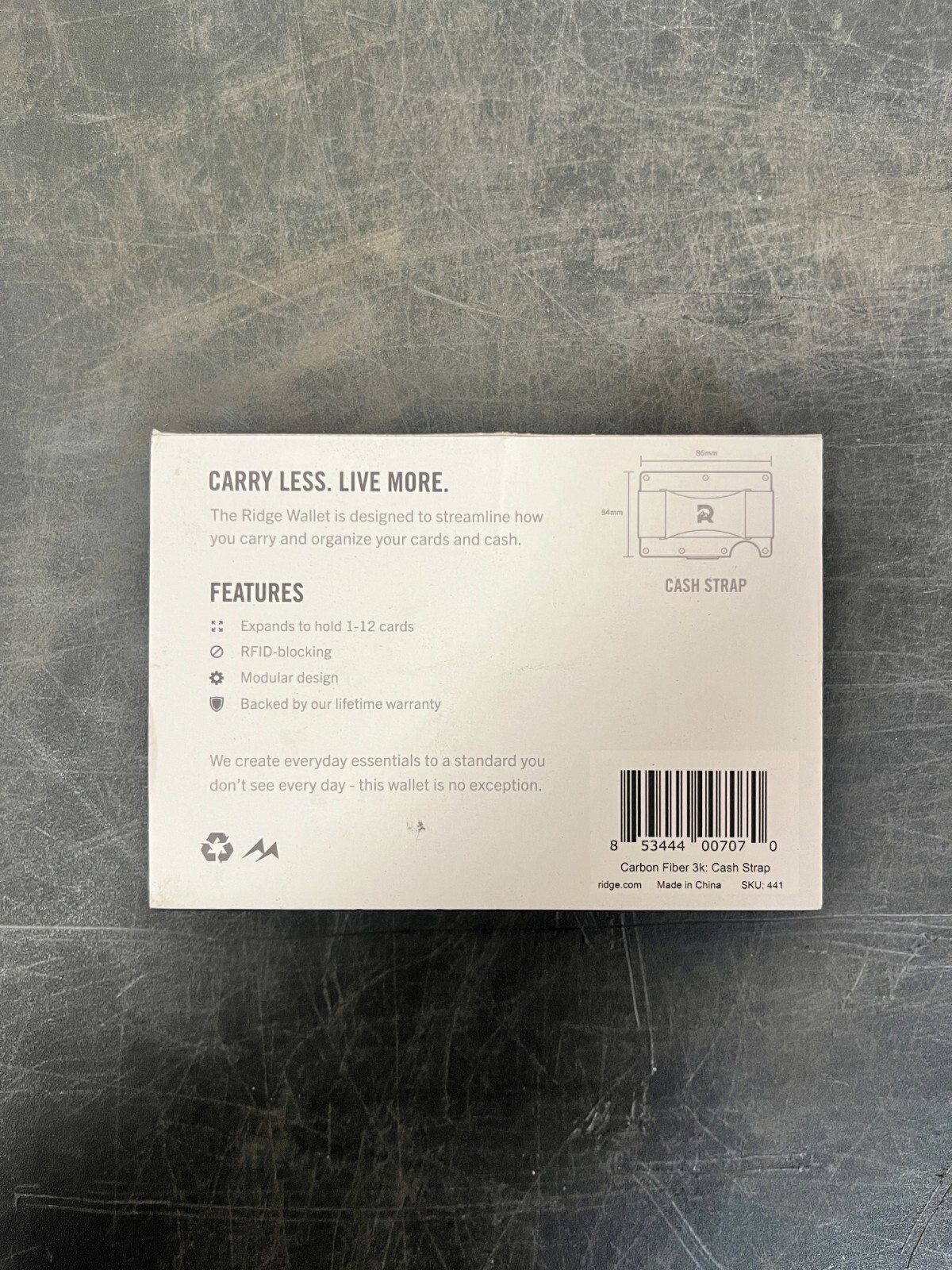 как выглядит Ridge Wallet 3K Carbon Fiber RFID Blocking Minimalist Wallet w/ Cash Strap фото