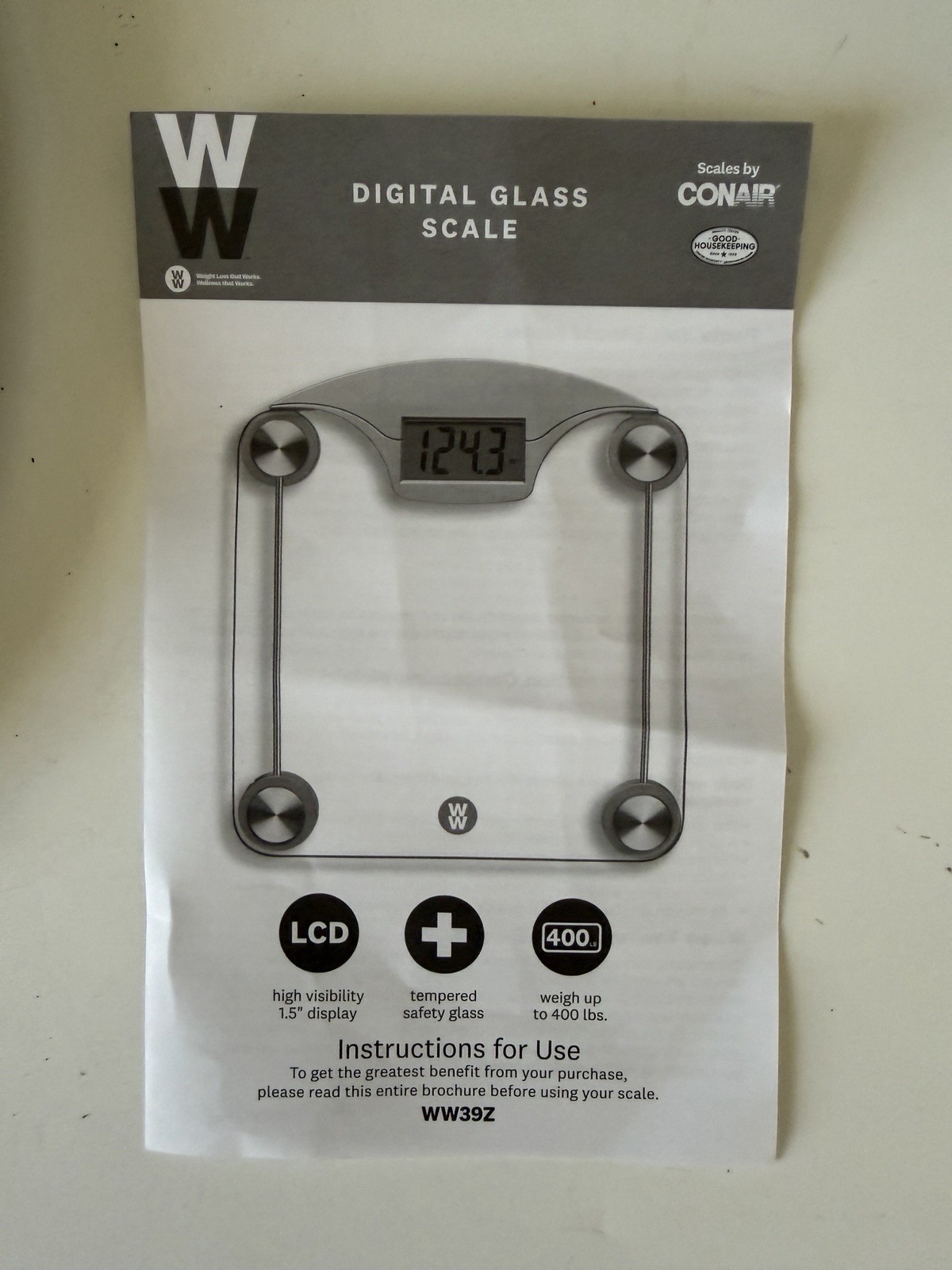 Weight Watchers Digital Glass Scale Weight Tracker b Conair WW206X NEW 400lb Max