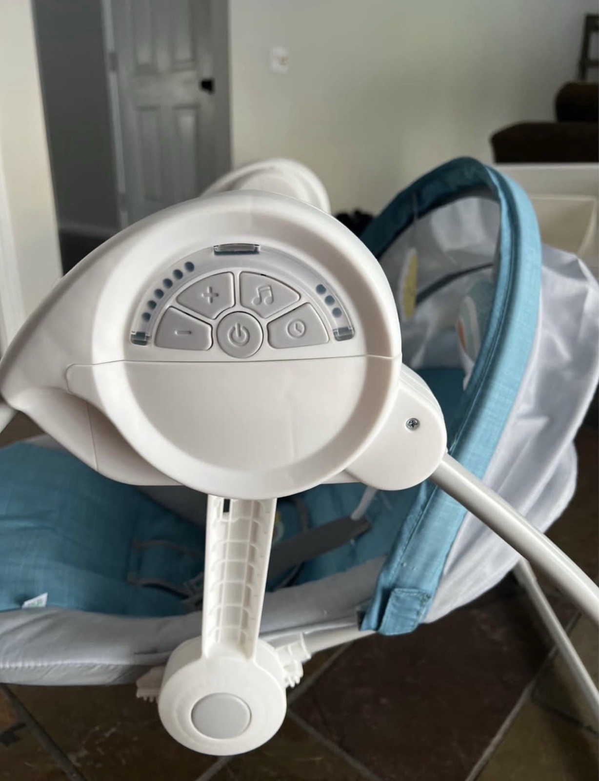как выглядит Ingenuity Baby Swing Adjustable Speeds Music Portable Blue Gray White Infant фото
