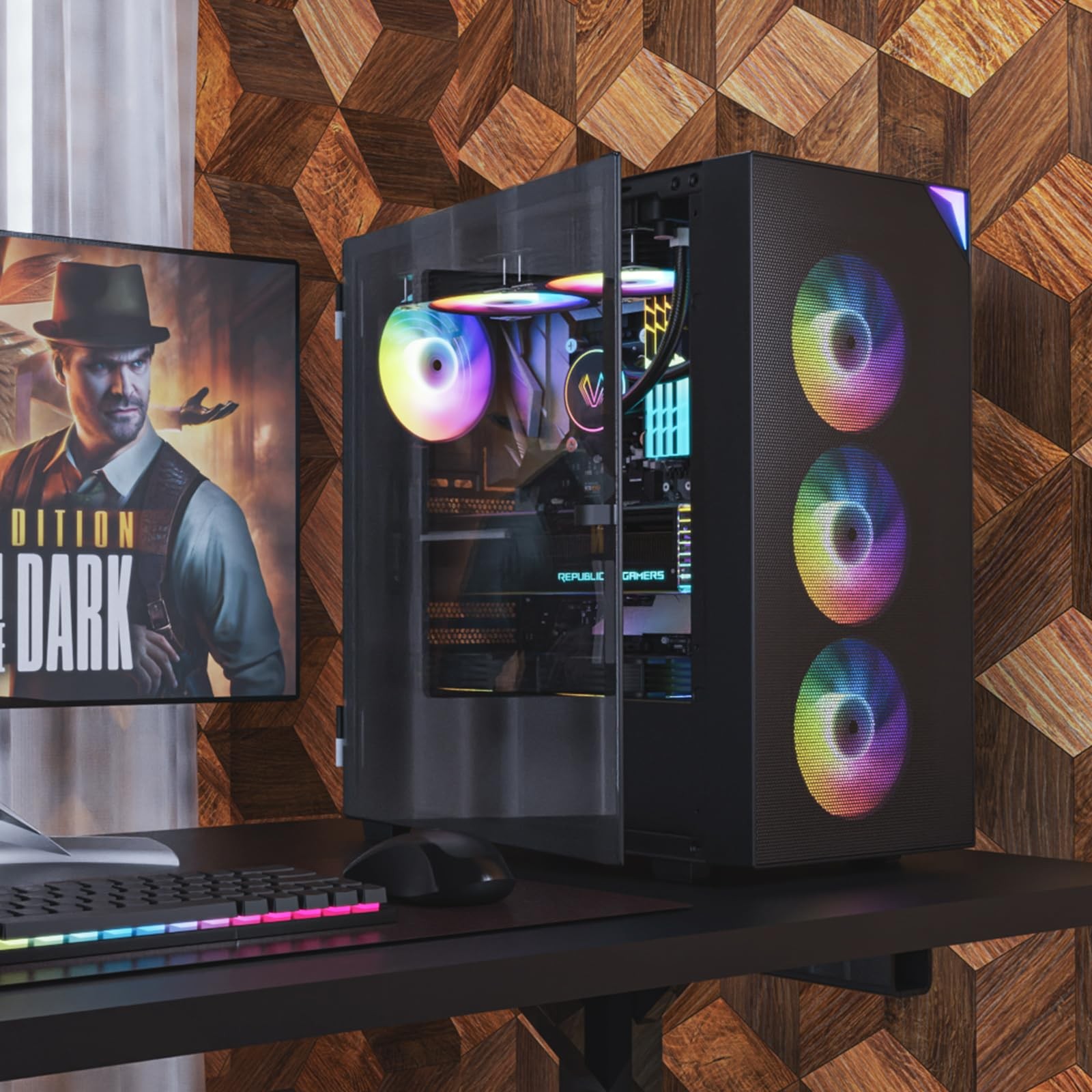 Mid Tower ATX PC Case Door Opening Tempered Glass Black LED Fan Support