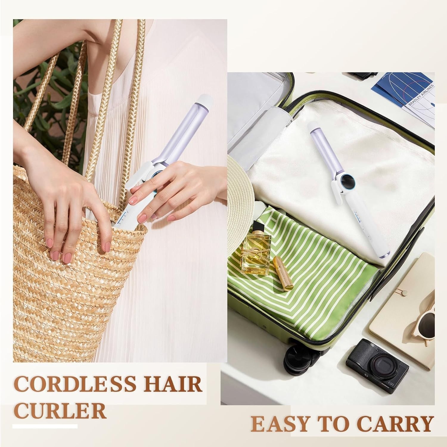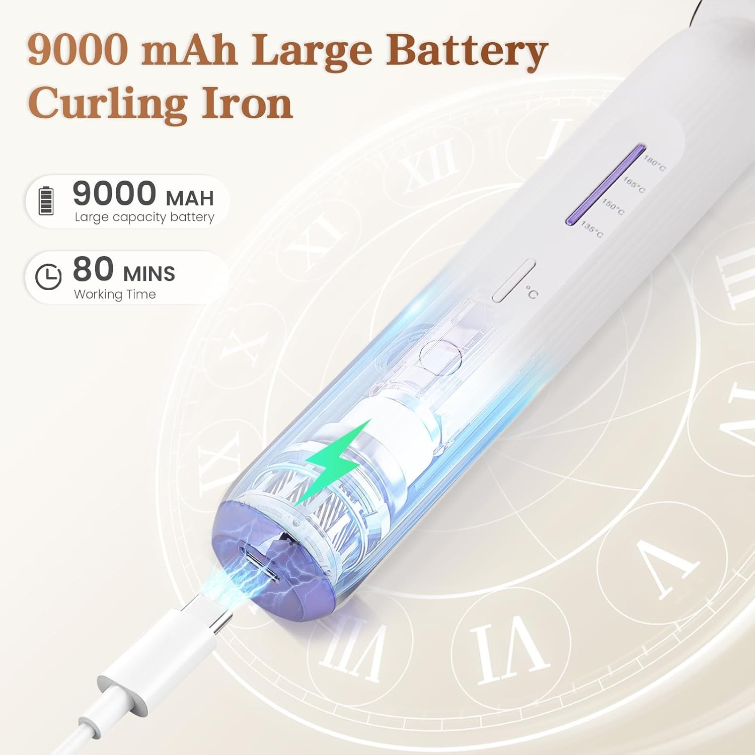 9000 mAh Rechargeable Cordless Curling Iron, Up to 400 F USB 28MM Cordless Hair.