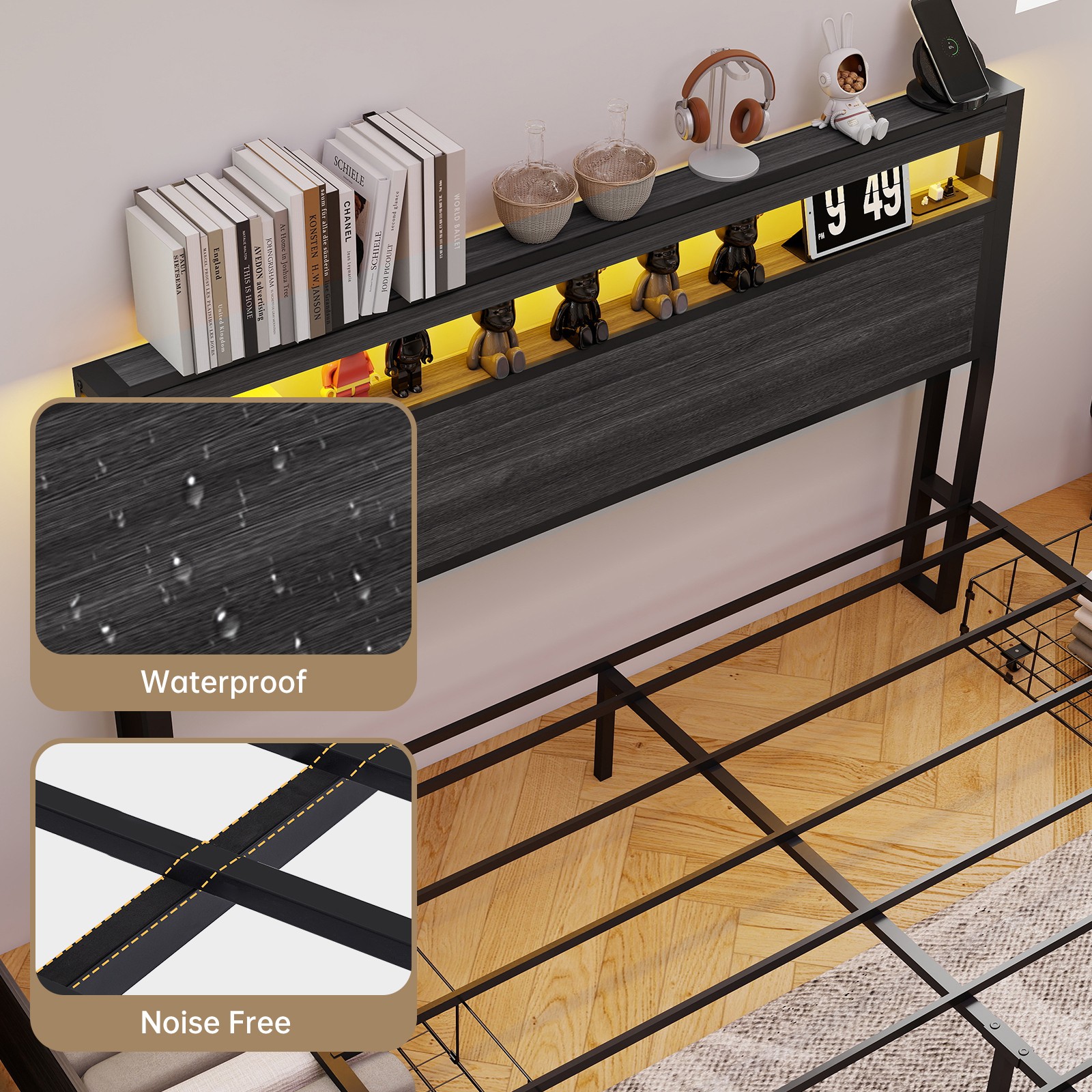 Queen Size Bed Frame with LED Headboard and 4 Storage Drawers,Charging Station