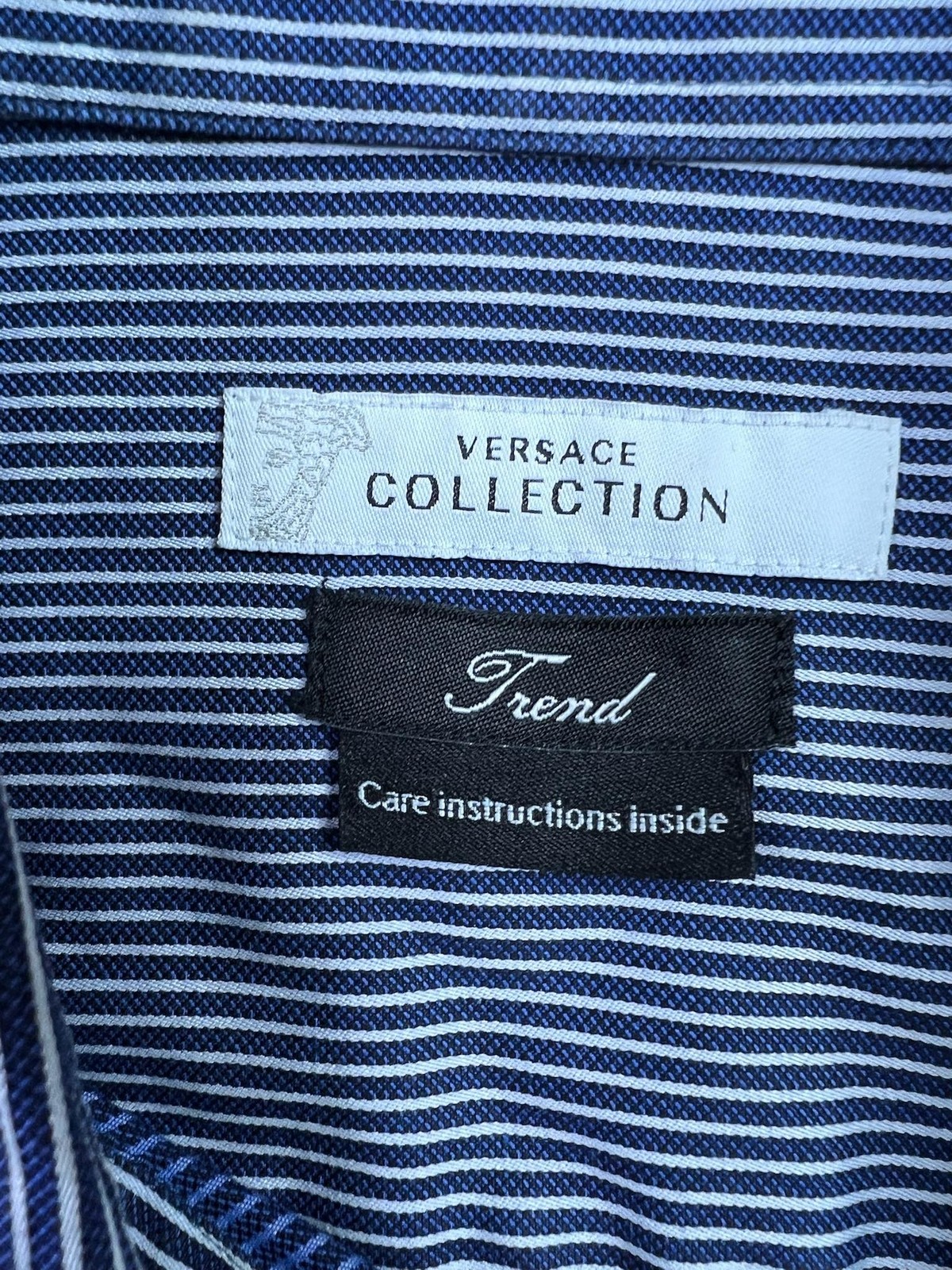 как выглядит Versace Collection Dress Shirt Mens 40 Blue Stripe Trend Cotton Long Sleeve фото