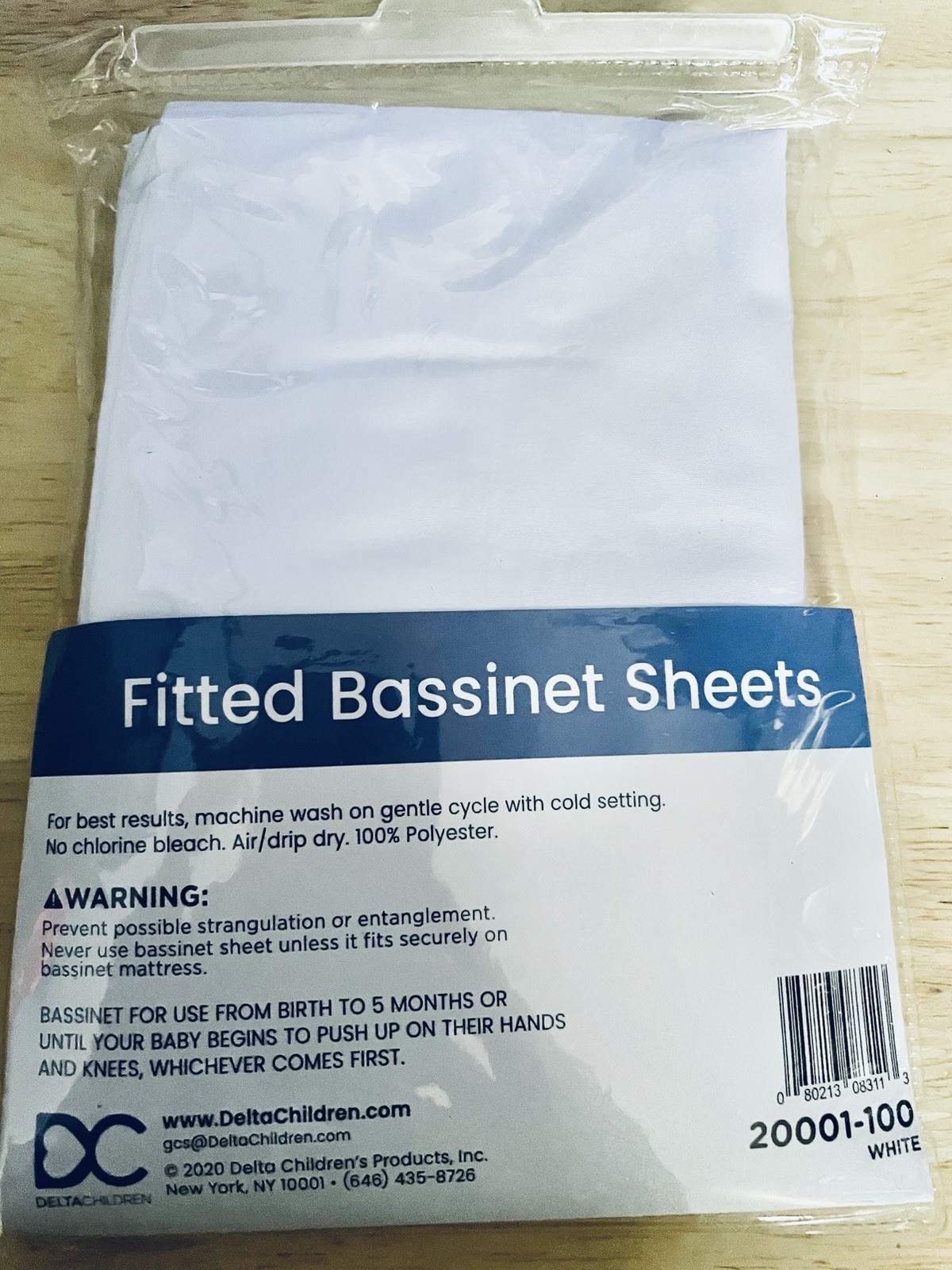 Delta Children s Bassinet Fitted Sheets 2 Pack White 30x15.2x1 Fits 25020