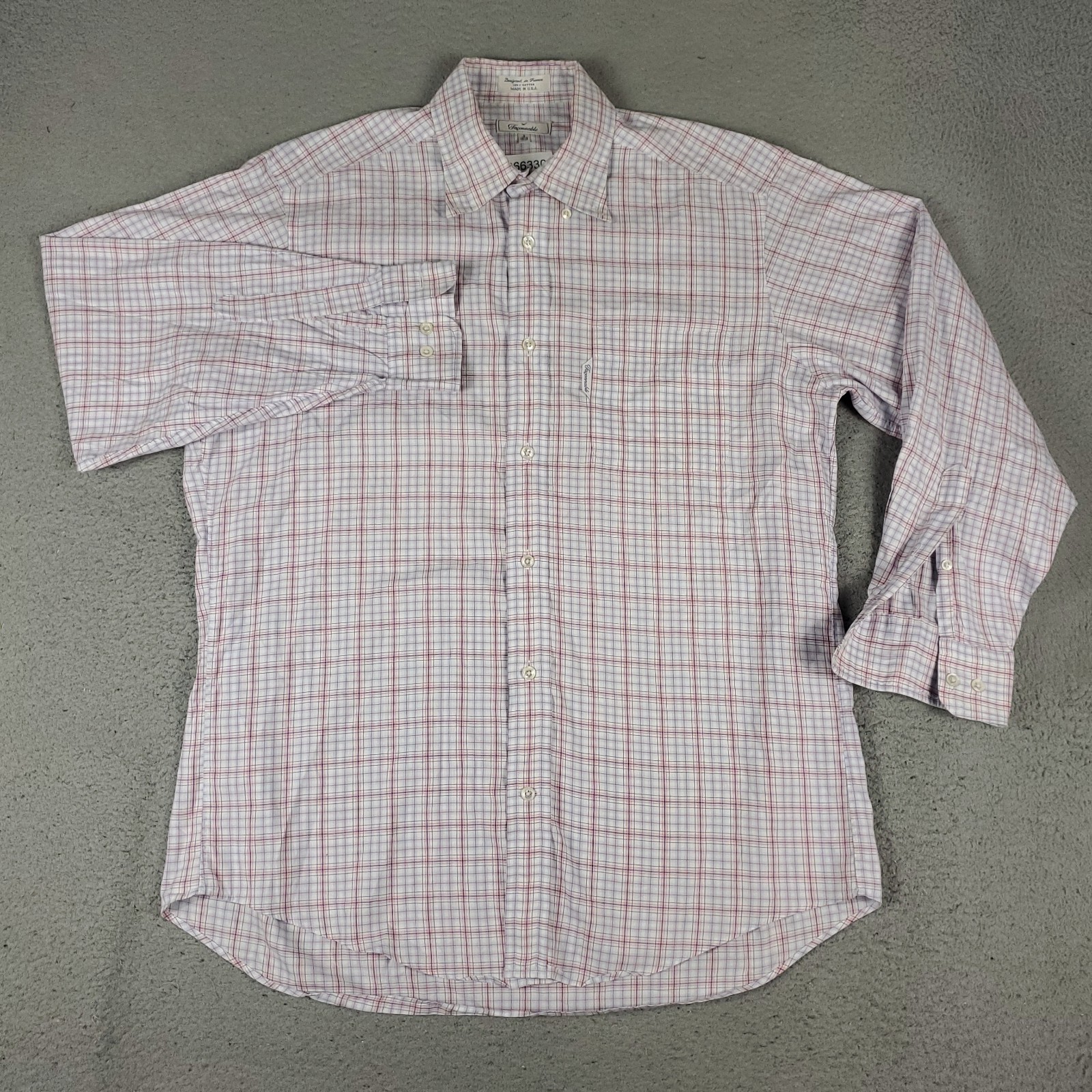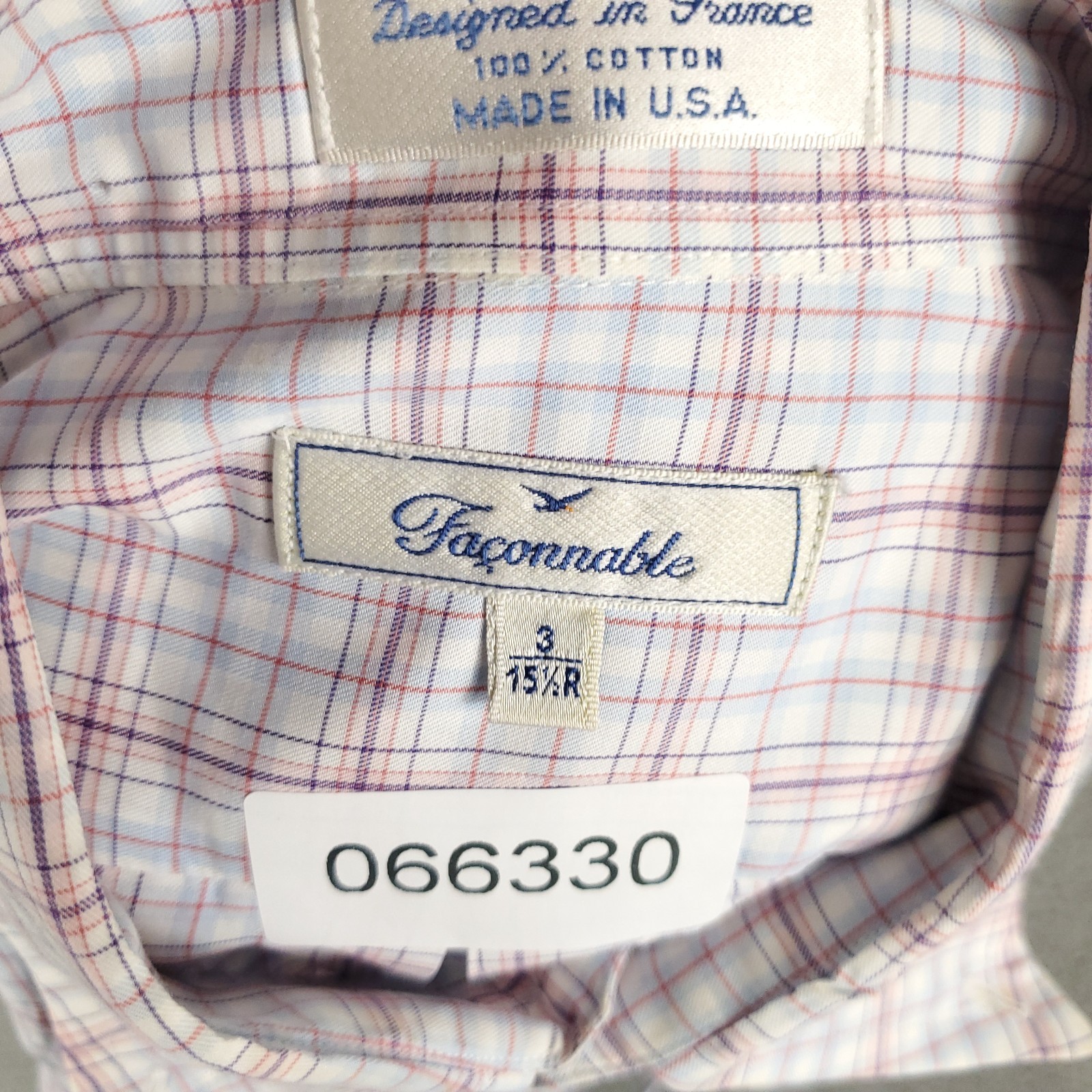 как выглядит Faconnable Shirt Mens Size 15.5 Blue Pink Plaid Dress Button Up Long Sleeve фото