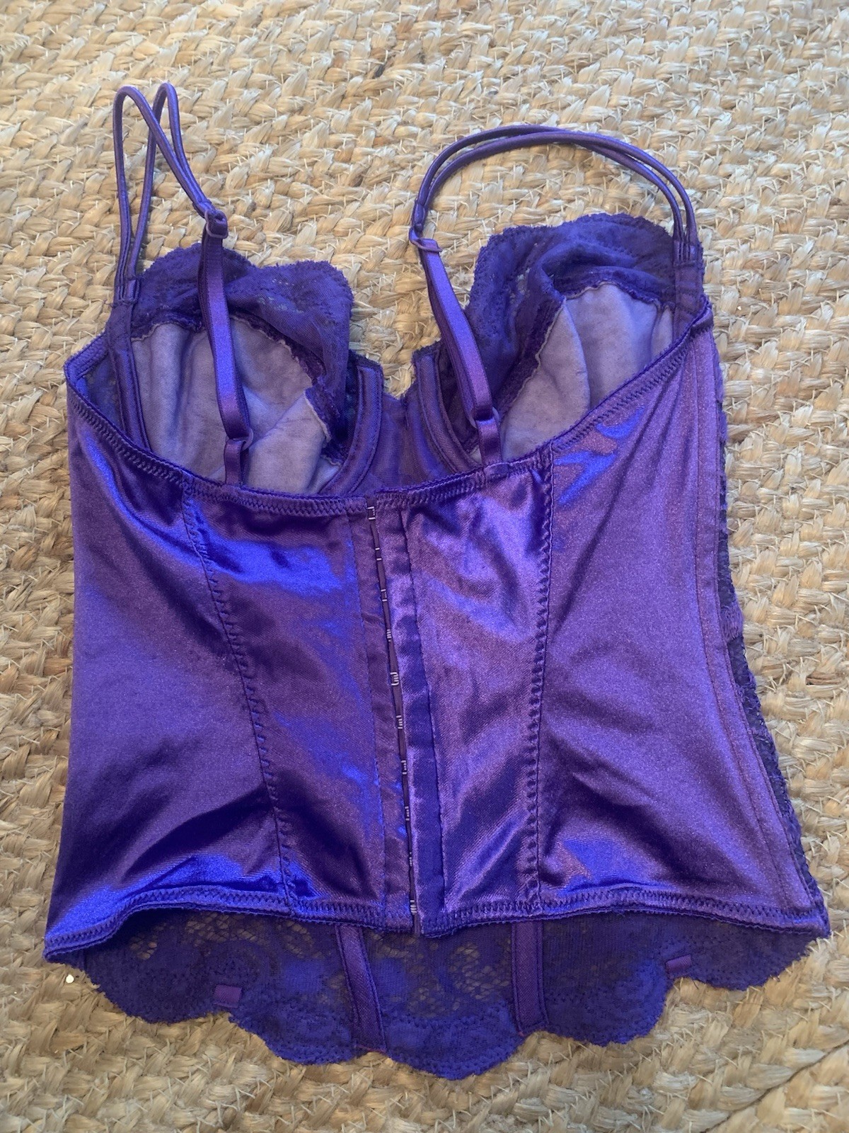 Vtg Gold Label Victoria's Secret Satin Corset Bustier Lace Purple 9219 Size 34C