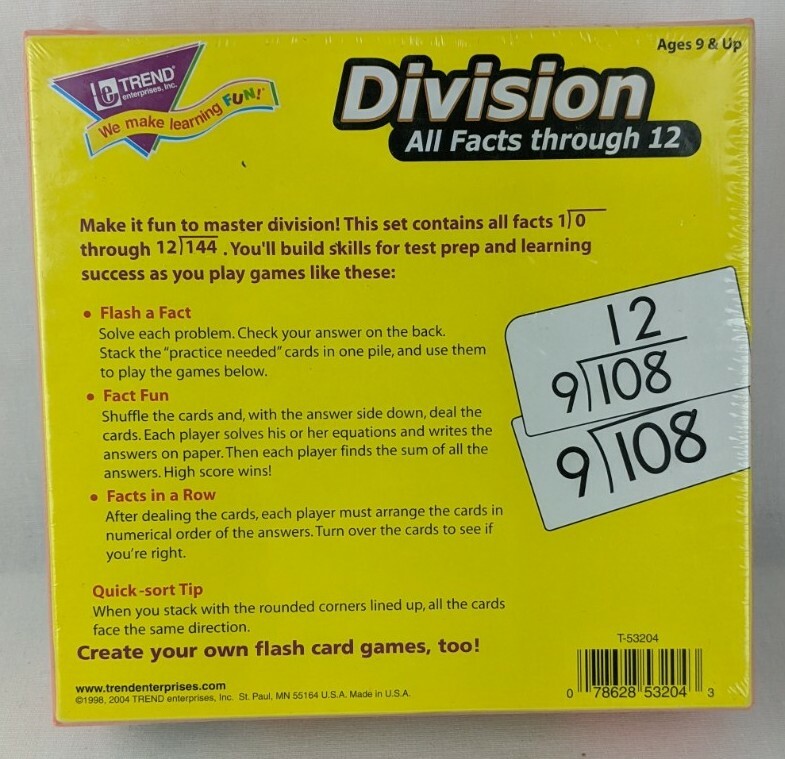 Trend Enterprises DIVISION 1-12 Flash Cards Home Schooling Learning NEW SEALED
