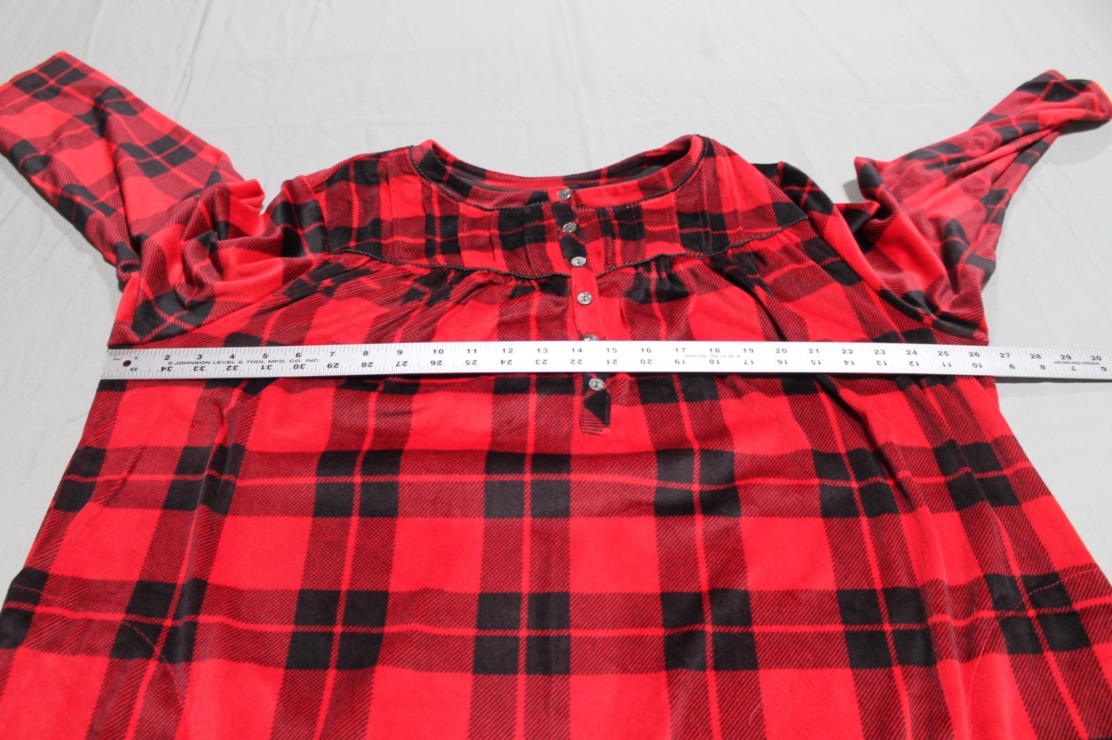 как выглядит Aria Collection Nightgown Long Sleeve Velour Sz XL Red Buffalo Plaid Pockets фото
