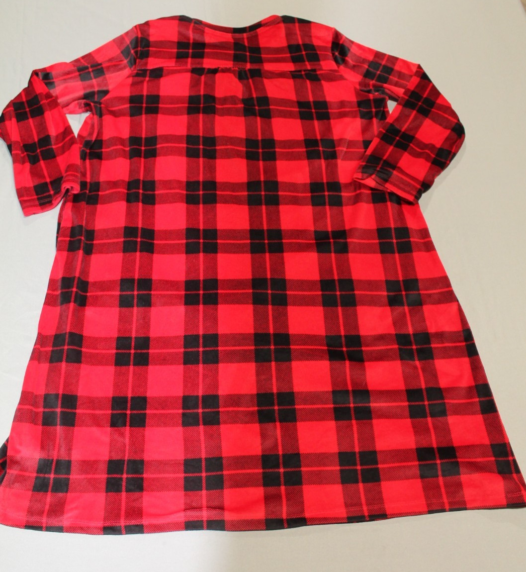 Aria Collection Nightgown Long Sleeve Velour Sz XL Red Buffalo Plaid Pockets