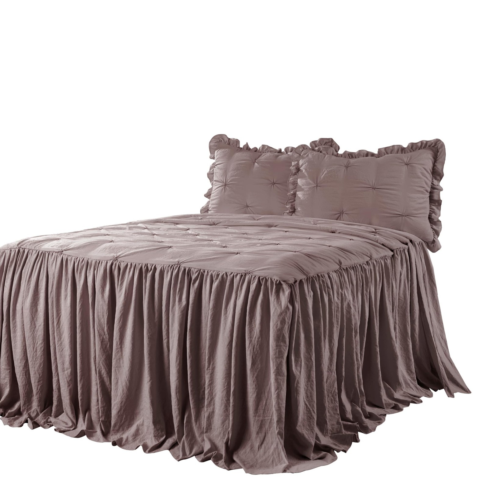 Ravello Pintuck Ruffle Skirt Bedspread Set - Luxe 3 Piece Ruffled Bedding Set...