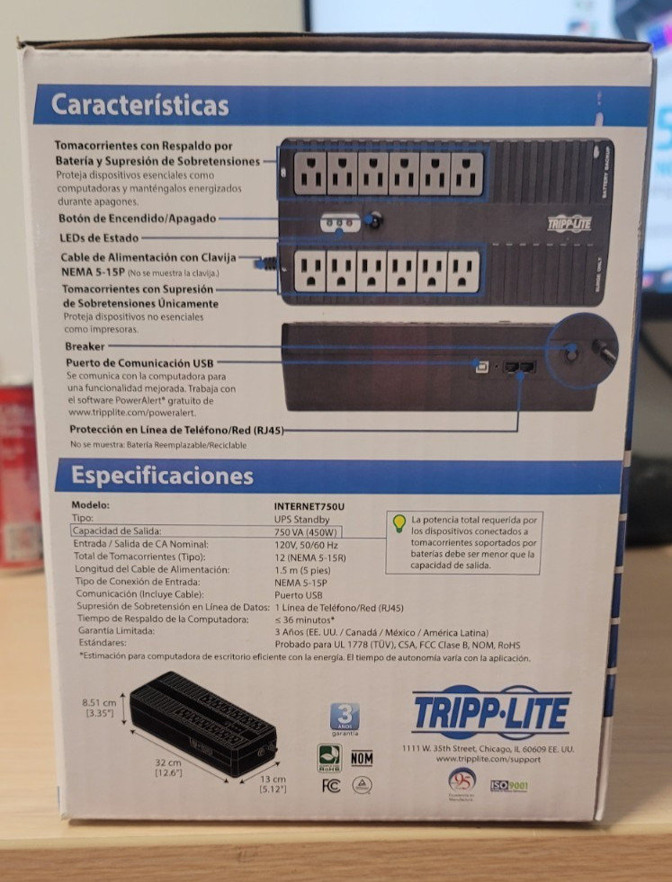 Tripp Lite UPS 750VA 450W Compact Battery Backup UPS, 12-Outlets,-INTERNET750U