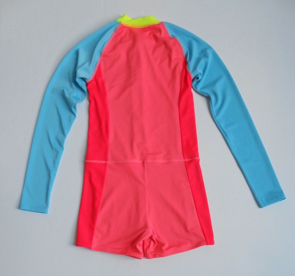 как выглядит CREWCUTS Girls full-coverage swimsuit colorblock UPF 50 Glow Azure Red Size 12 фото