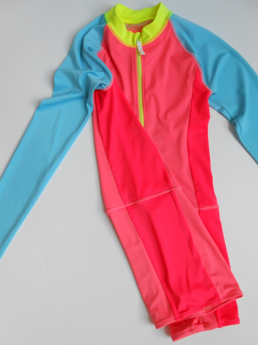 CREWCUTS Girls' full-coverage swimsuit colorblock UPF 50 Glow Azure Red Size 12