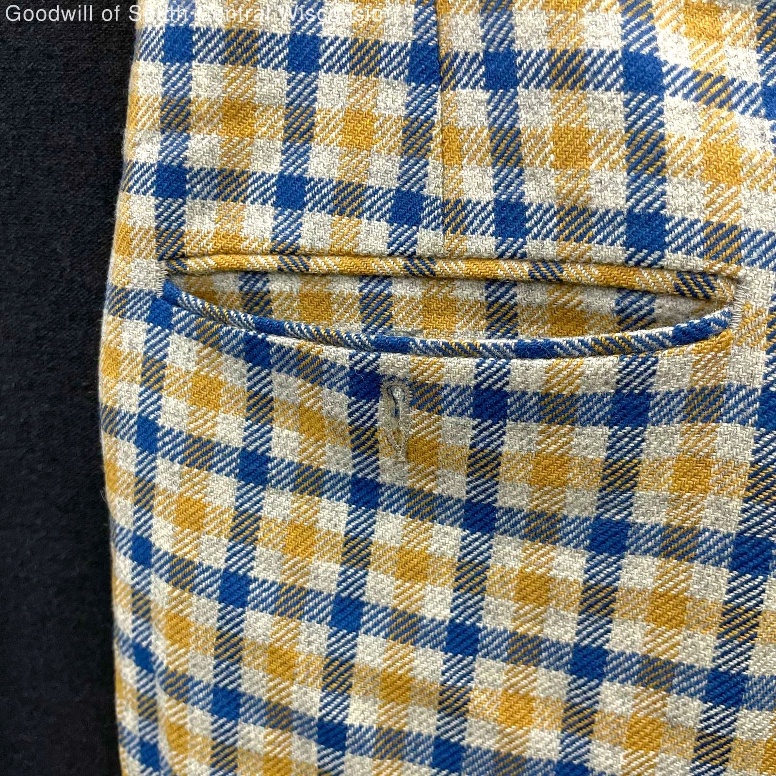 как выглядит Mens 60s Vintage HUNTLEYS Wool Funky Tan Blue Gray Plaid Dress Pants 32.5" фото