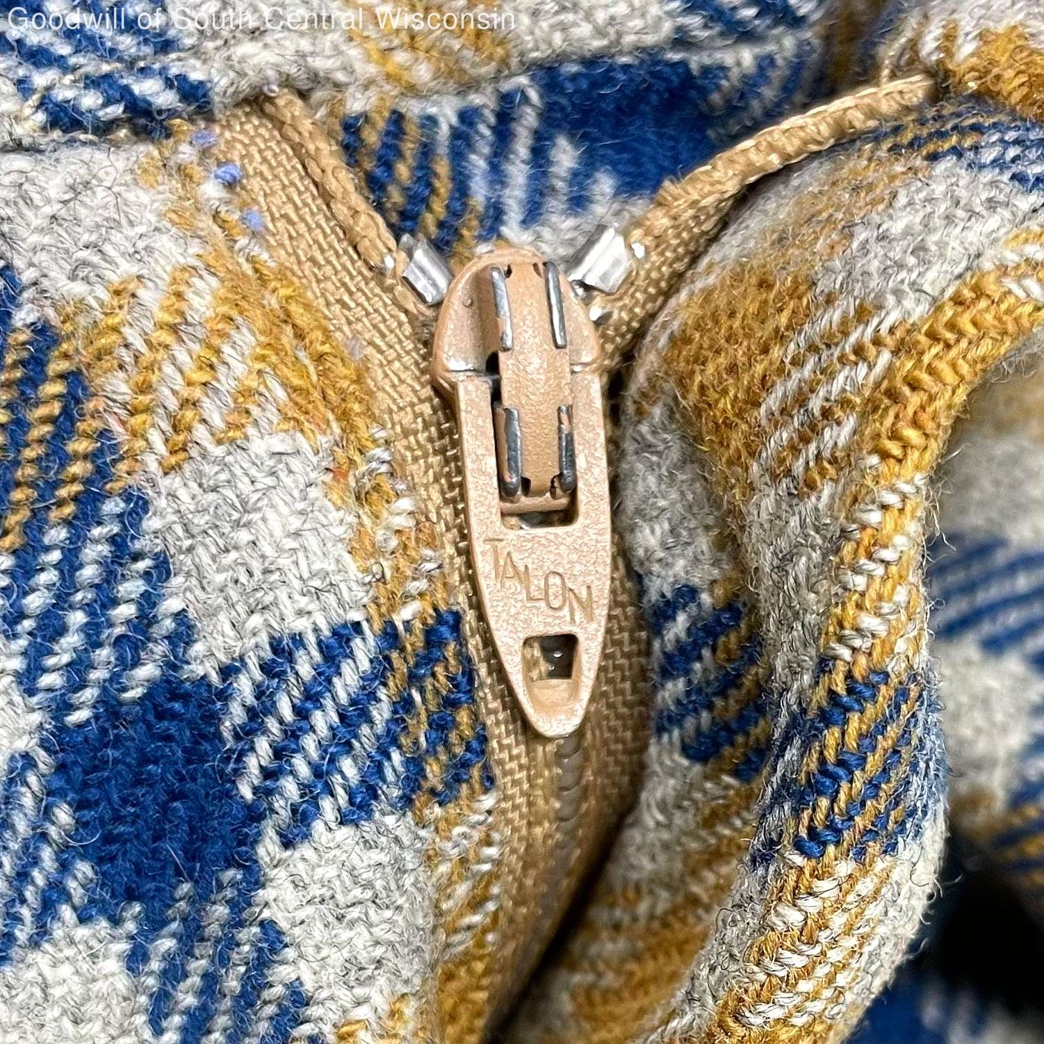 Mens 60s Vintage HUNTLEY'S Wool Funky Tan Blue Gray Plaid Dress Pants 32.5