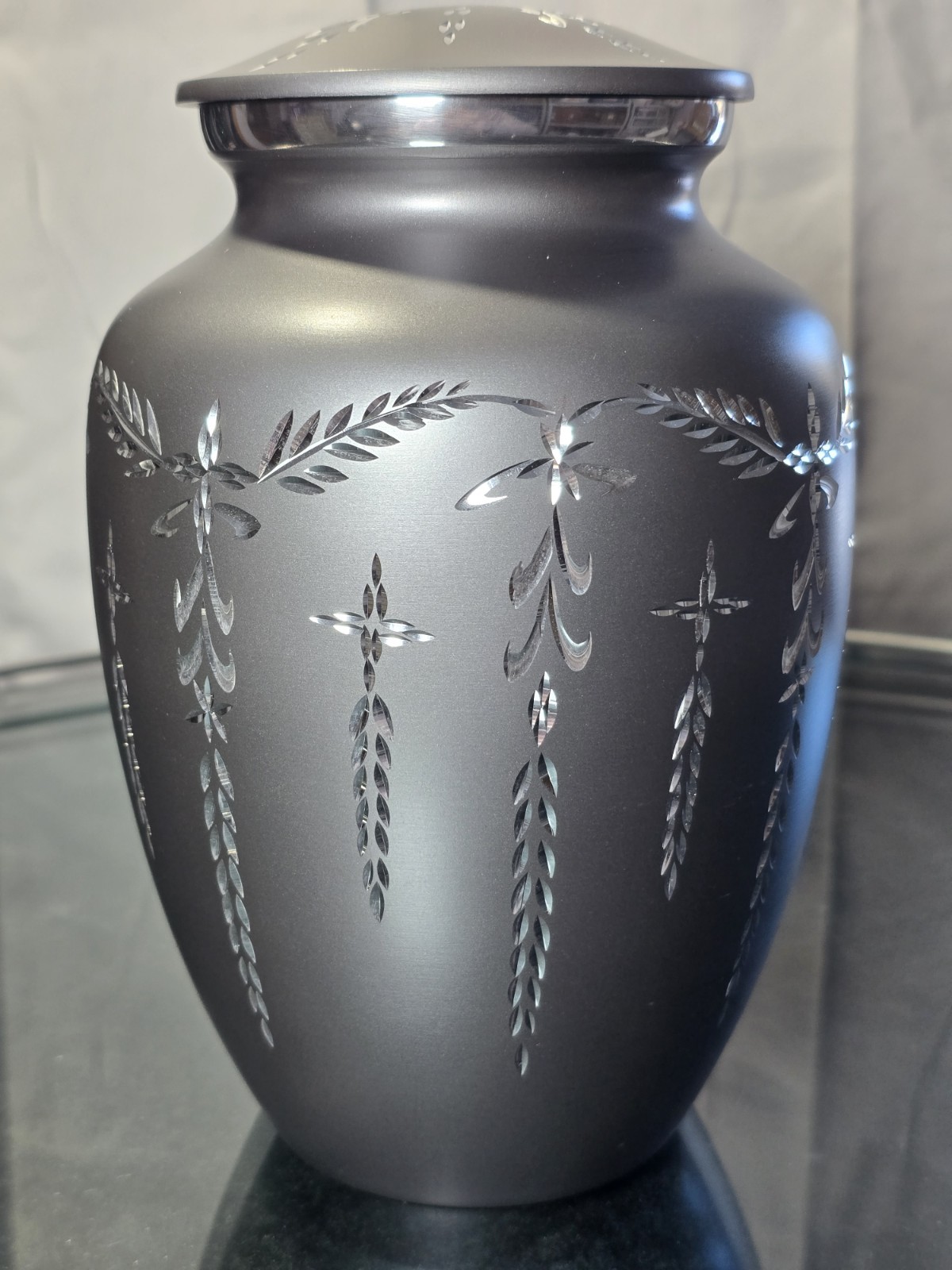 NEW Medium Fancy Flourish Cremation Urn FOR HUMAN AHES 8 1/2 GREY METAL