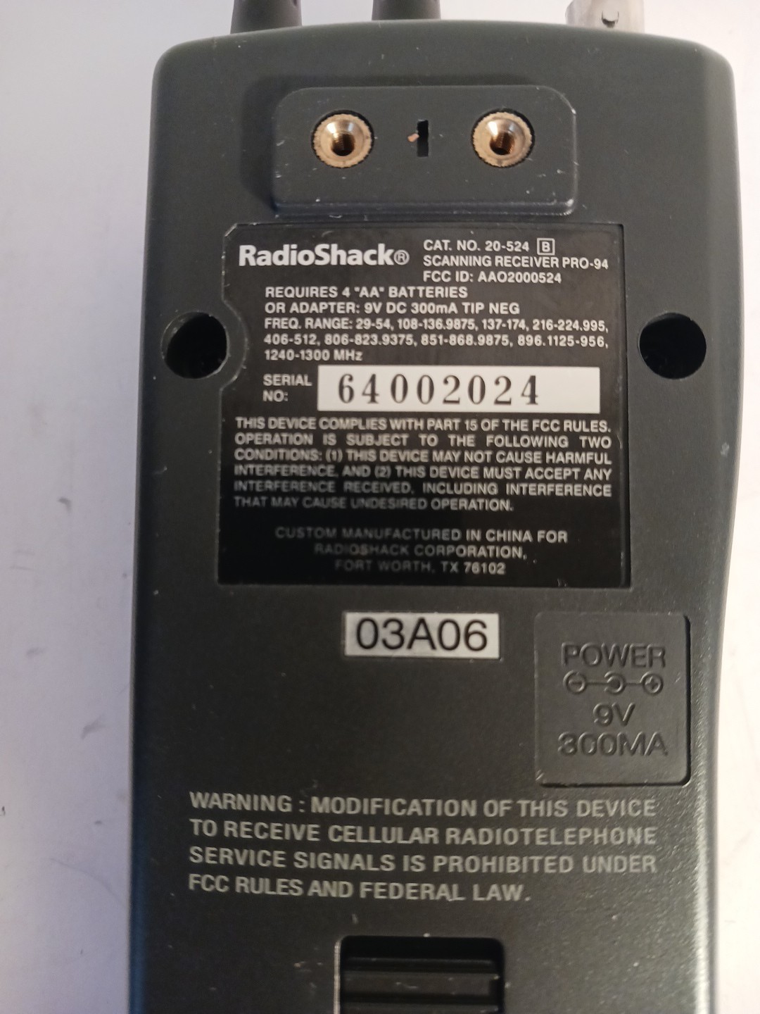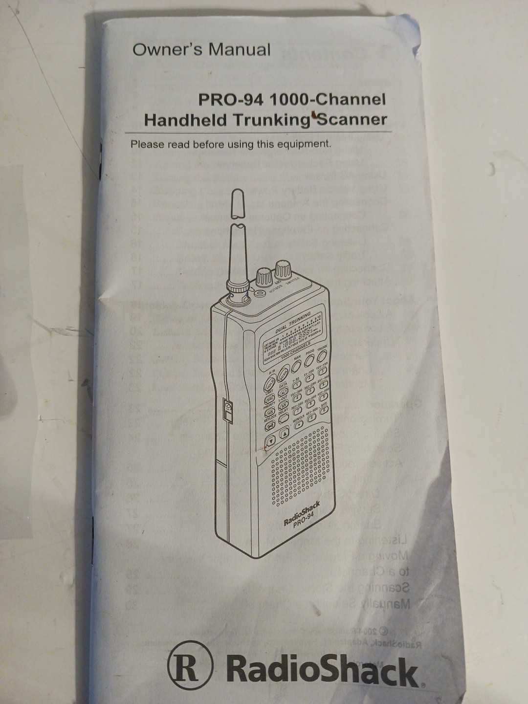 RadioShack Pro-94 1000 Channel Handheld Trunking Scanner Cat No. 20-524
