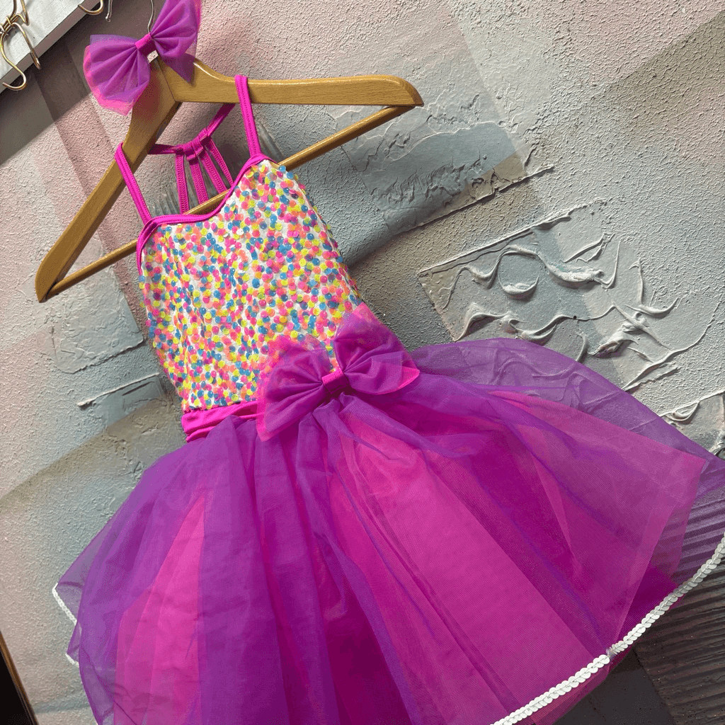Weissman Showtime Confetti Sequin Dance Costume 17153 Ballet Tap Jazz Tutu Bow