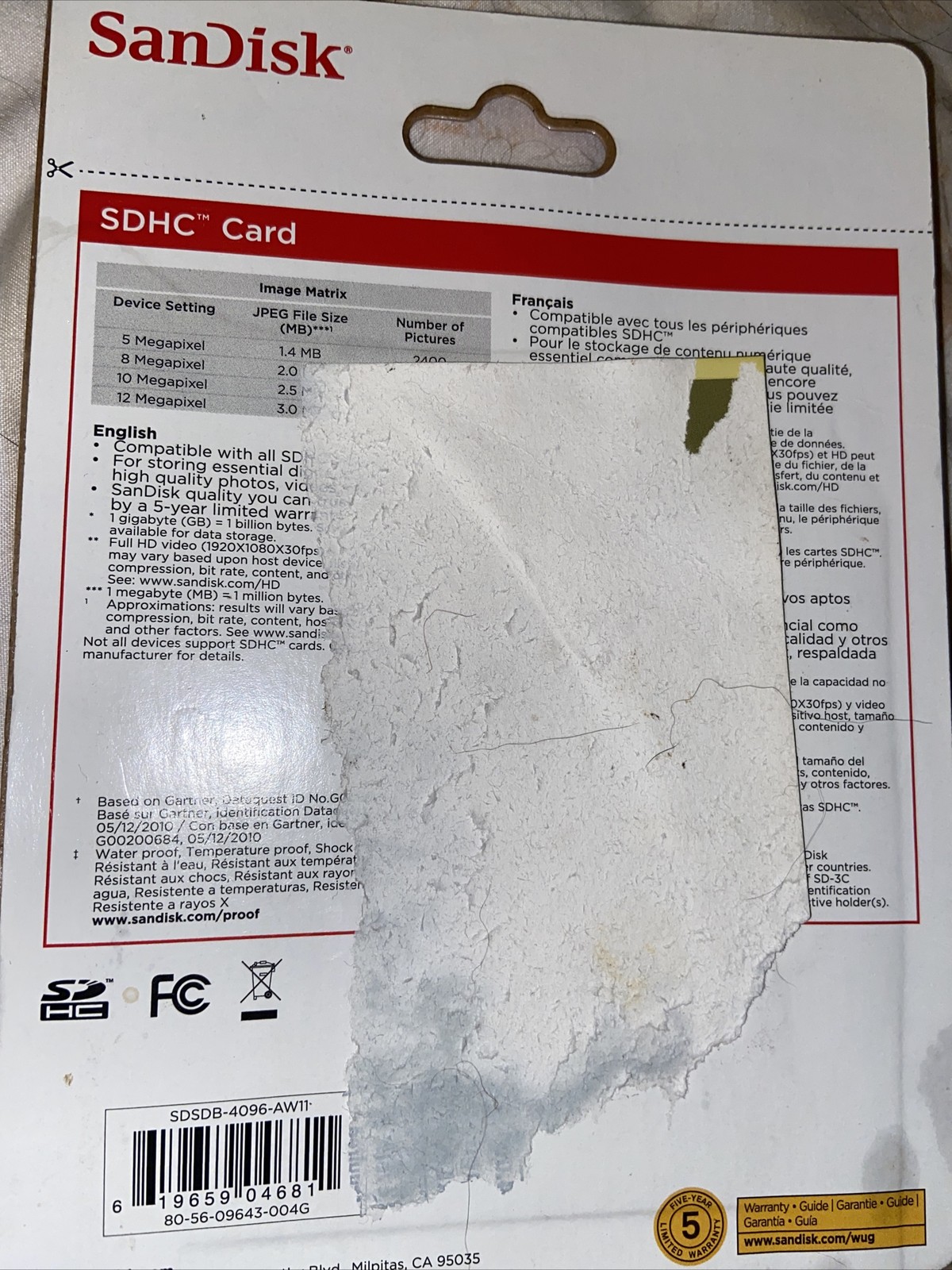 как выглядит SanDisk 4GB Secure Digital High Capacity SDHC Card New Sealed фото