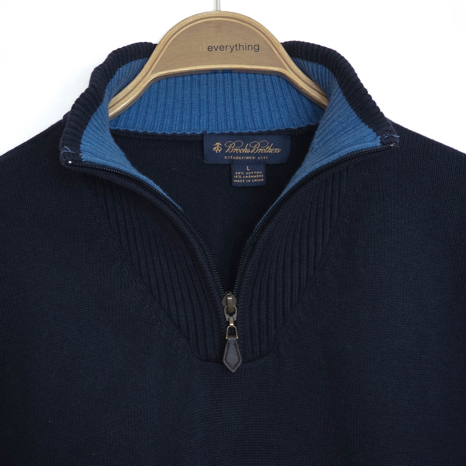 Brooks Brothers Sweater Cotton Cashmere 1/4 Zip Pullover Mens L Blue Mock Neck